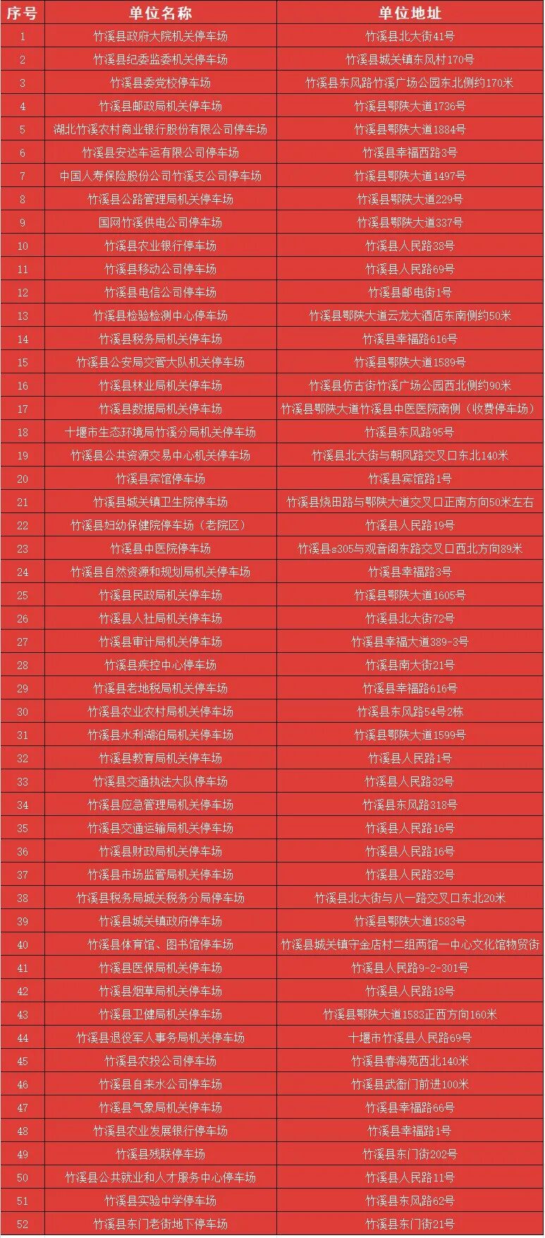 快收藏,這份實用的免費停車信息。“武陵盛會 讓位于客”,竹溪縣部分機關企事業單位內部停車場面向社會開放名單。