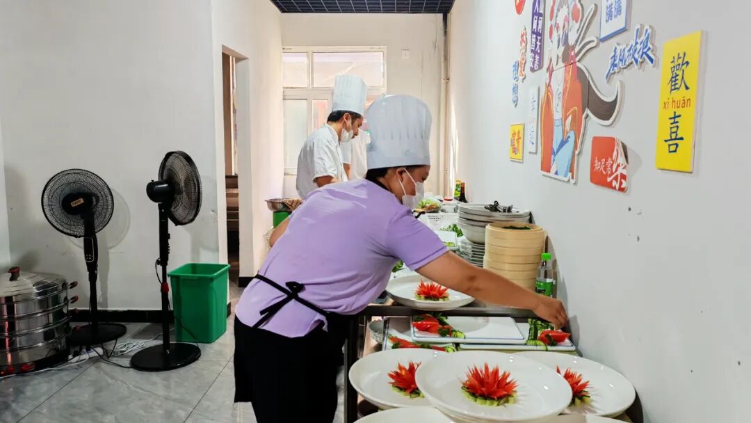 比賽前,前來(lái)參賽的“鄉(xiāng)鎮(zhèn)大廚”們?cè)缫涯θ琳?,全力籌備參賽菜式。下午5時(shí),隨著比賽時(shí)間臨近,主廚和幫廚們紛紛開啟烹飪表演——蒸、炸、煮、炒間,一道道具有各鄉(xiāng)鎮(zhèn)特色的菜肴陸續(xù)完成擺盤,精致的造型、誘人的香氣讓人垂涎欲滴。