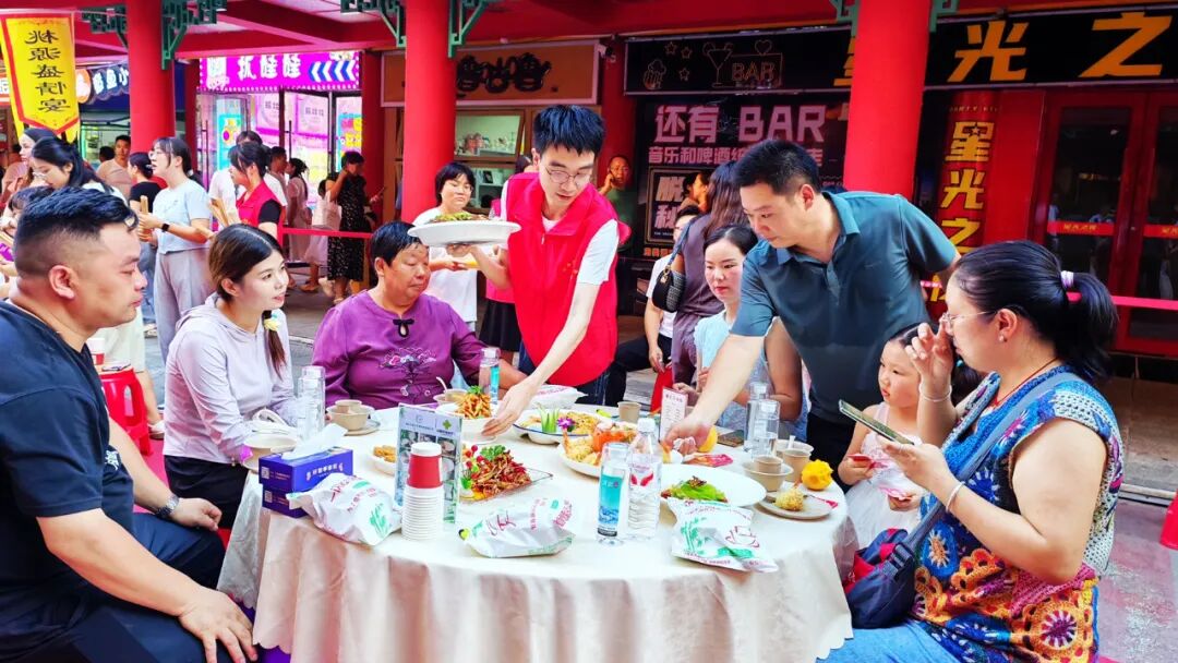 下午6時(shí),隨著一聲開賽鑼響,工作人員迅速將各類美食端上餐桌。早已等候多時(shí)的食客們立即動(dòng)筷,品嘗著心儀的特色菜。中峰貢米宴的貢米飯軟糯香滑、酸辣稻蛙酸爽下飯;“香”約水坪一桌宴的手撕雞皮脆肉嫩,龍壩龍湖宴的“美式牛排”肉質(zhì)筋道,蔣家堰羋月宴的朔玉兔鮮香嫩滑,城關(guān)百味鮮的龍眼扣肉香甜軟糯、肥而不膩,讓現(xiàn)場(chǎng)游客大飽口福,對(duì)每一道菜品都贊不絕口。