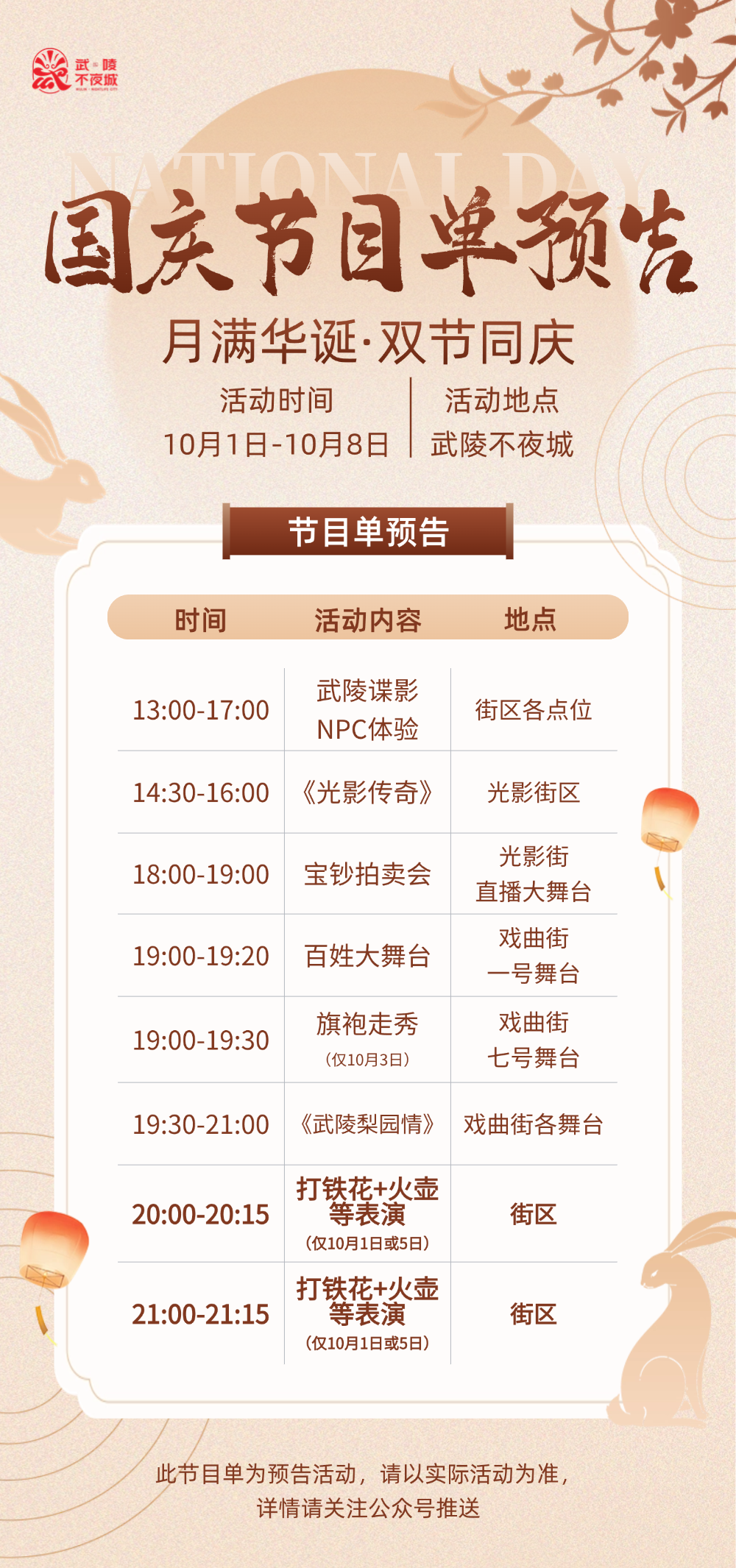 國慶假期武陵不夜城連續8天晝夜不打烊帶你沉浸式體驗國潮與民俗碰撞的文旅盛宴跟著夜游巴士開啟一場觀戲與逛吃的歡樂之旅