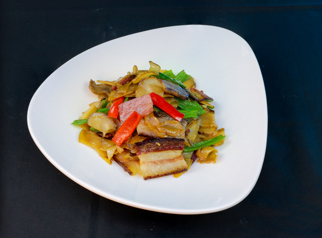 土豆切片曬干,與臘肉一起炒制,土豆的脆爽與臘肉的咸香相互融合,下飯神菜。