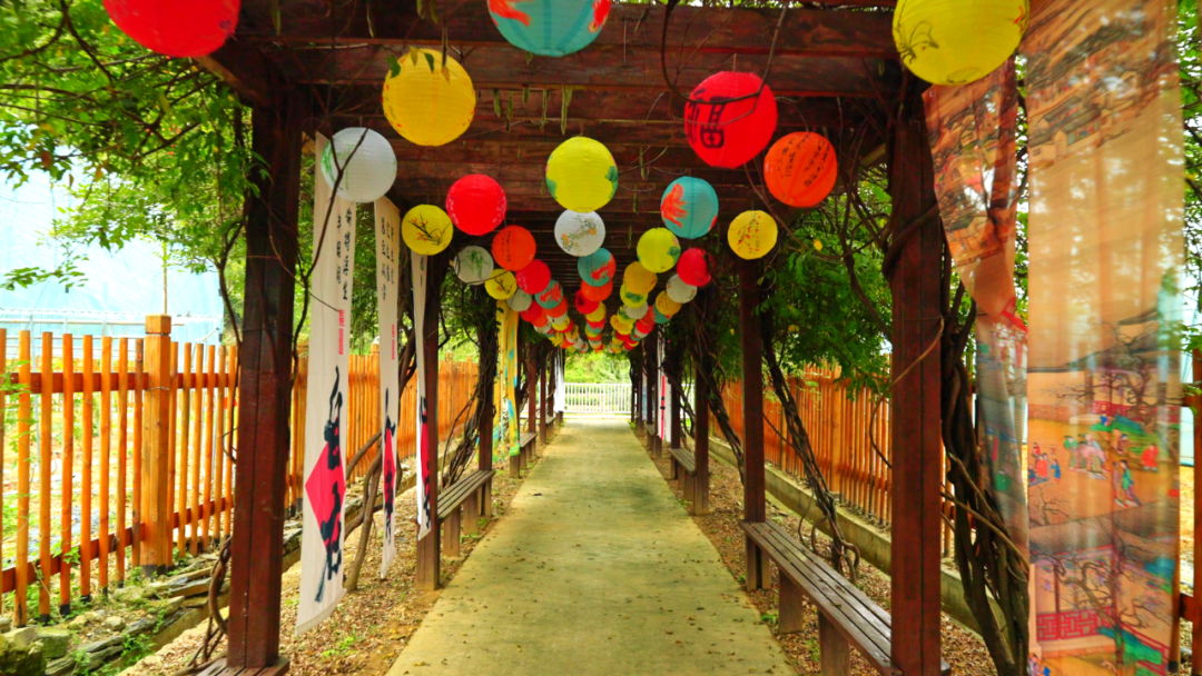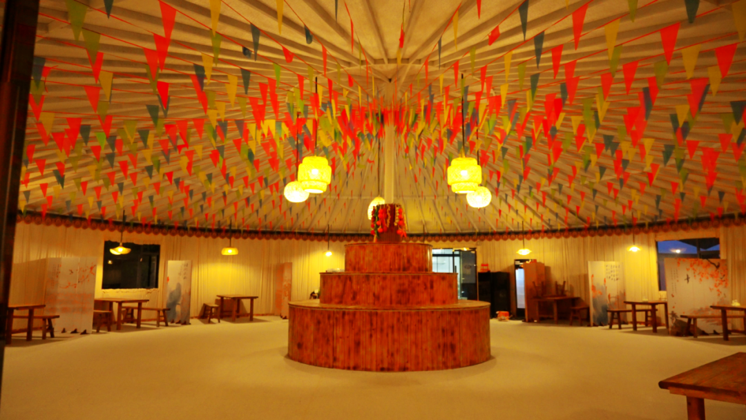國風氛圍濃厚,頭頂是暖光氤氳的仿古燈籠,四周的古風帷幔上繪制的《清明上河圖》,營造出穿越千年的沉浸感。精心設計的網紅掛布巧妙點綴,將現代打卡美學與古典韻味完美融合,更有豐富多樣的農特產品等您前來解鎖!