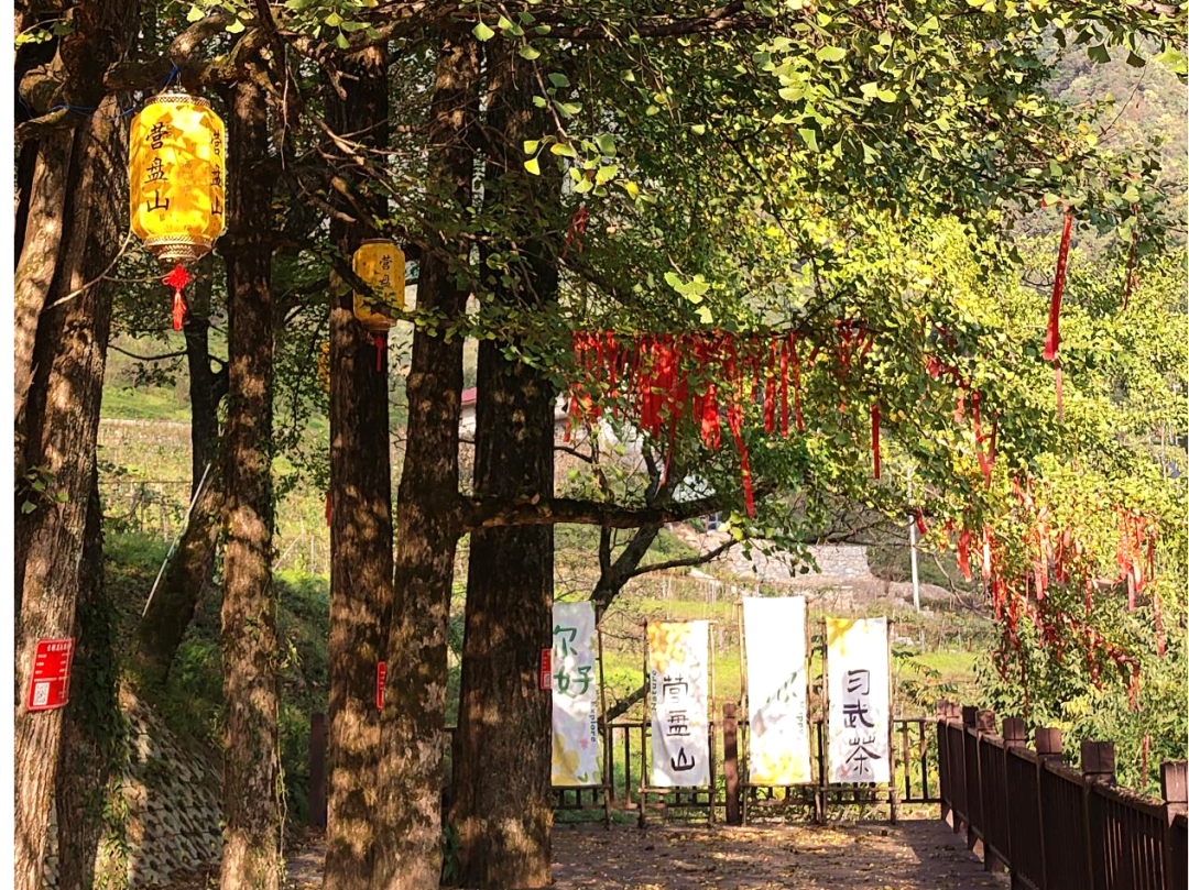 ②可沿“營盤山游客中心→海棠客棧/營盤山莊→靈龜望泉→木橋棧道→瀑布群(飛升瀑、雙棲瀑、云霄仙子瀑布)”游覽,沿途可經餐飲中心、茶山、桃園等點位,按需休整。