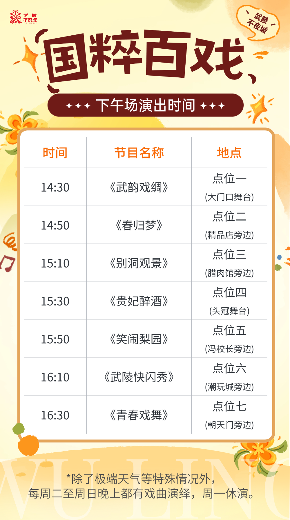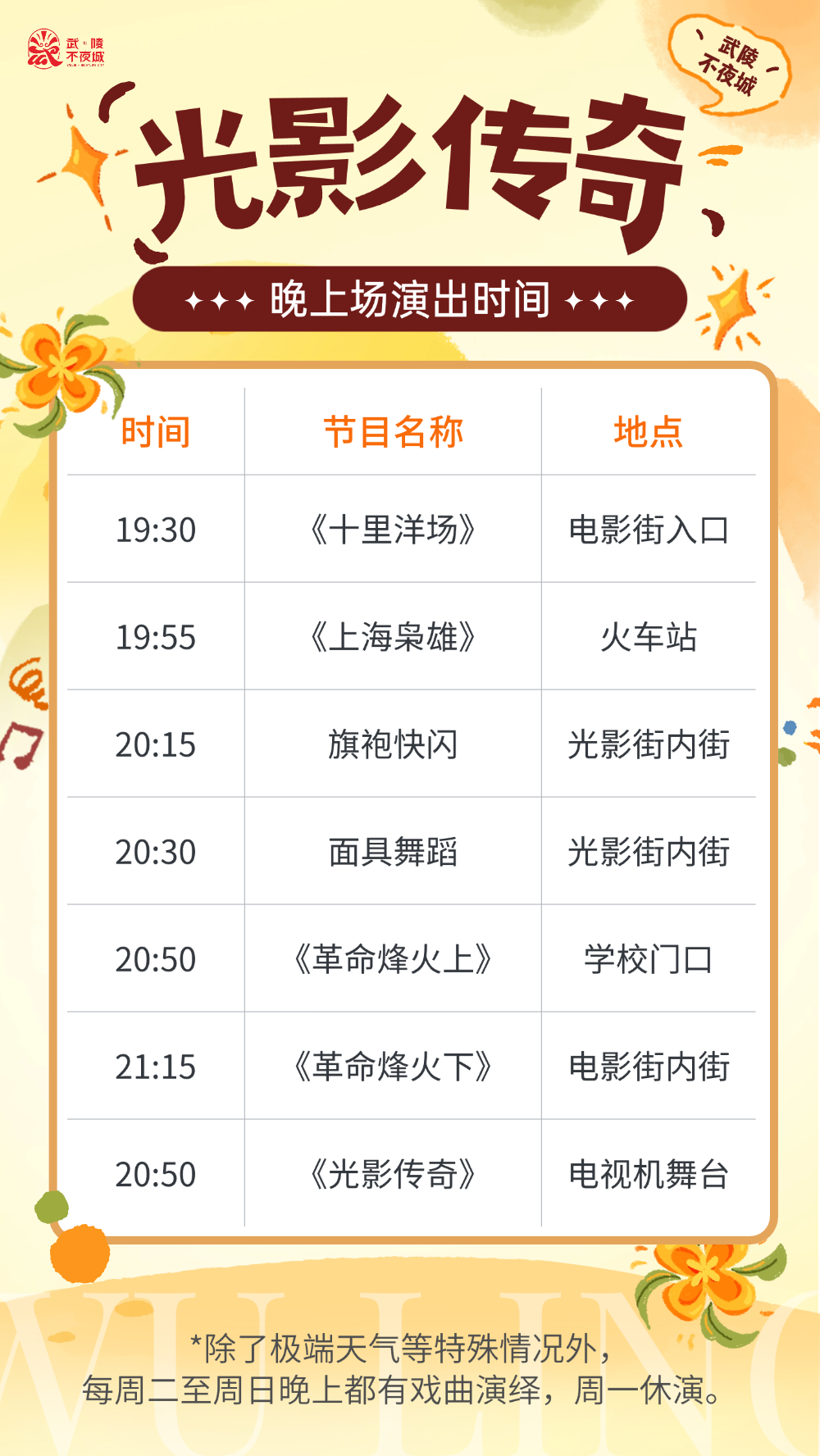 當竹溪河畔的燈籠次第亮起,擁有600年歷史的西關街便在光影中蘇醒。這里是全國首個沉浸式戲曲主題夜游街區,是國家級非遺山二黃的鮮活舞臺,更是藏著煙火與詩意的“秦巴桃花源”。今日的武陵不夜城依舊好戲連臺,快收好這份新鮮出爐的節目單,一起共赴一場“小城有戲?慢養竹溪”的夜游之約吧!