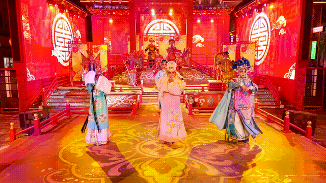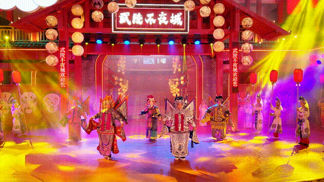 在武陵不夜城,游客們一起觀看了《武陵梨園情》1.0鐘情季演出,精彩的戲曲表演,動人的劇情設計贏得了陣陣掌聲。