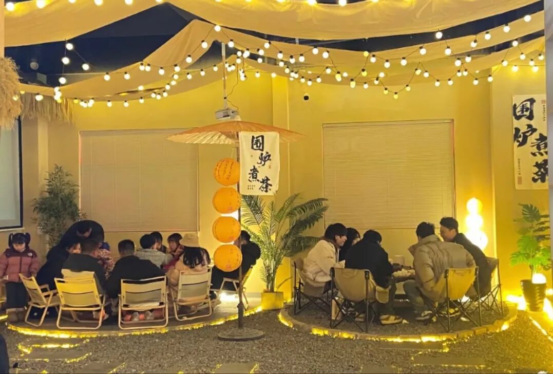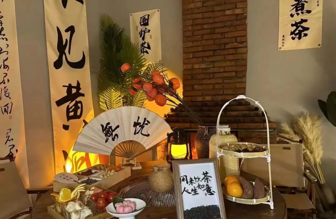 既能選擇在私密茶室里獨享清幽,也能選擇在開闊庭院中沐浴秋日微風。當爐火微暖、茶香漸濃時,約三五好友,在溫馨光影里共享一份圍爐套餐,讓時光在談笑間緩緩流淌。