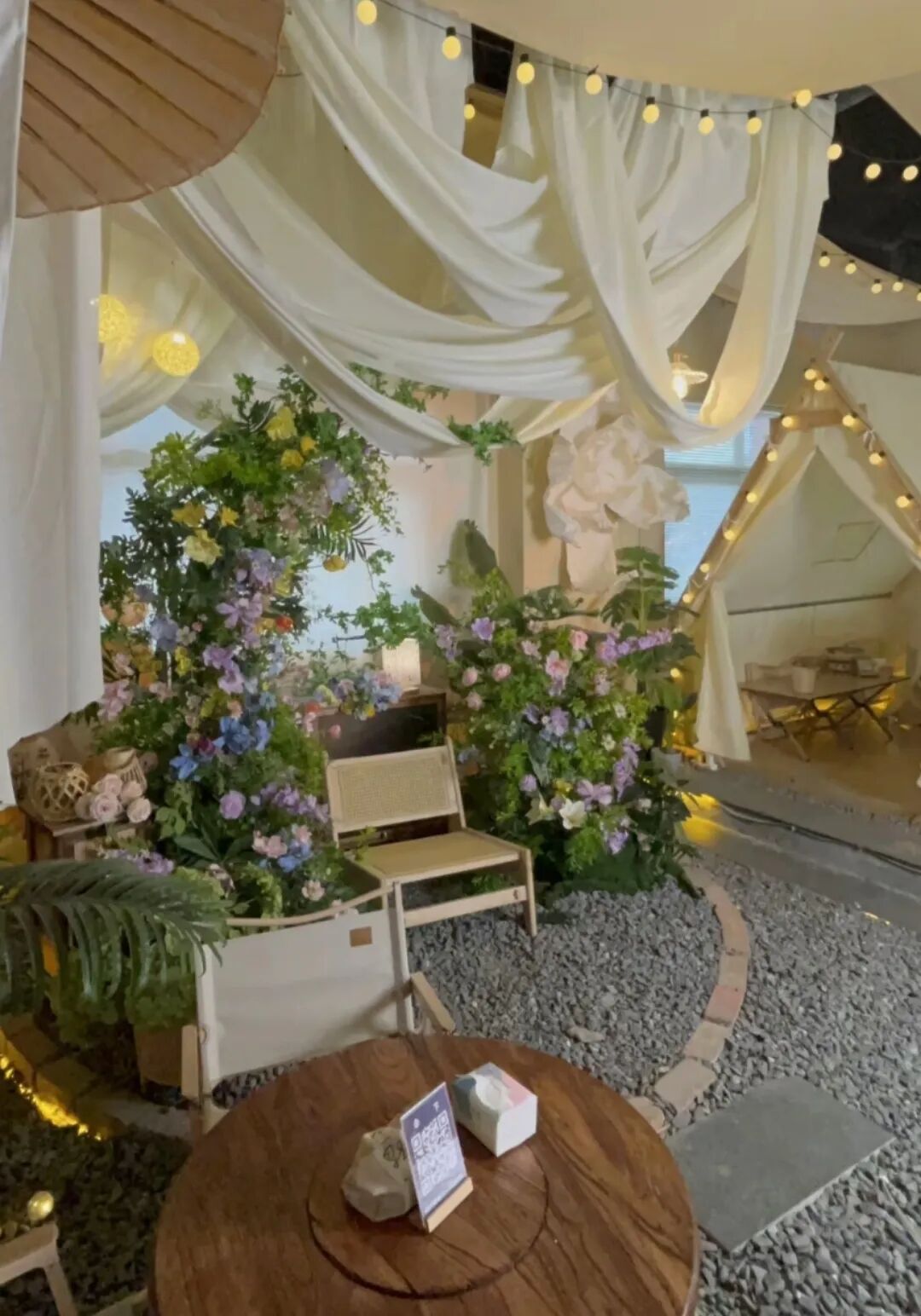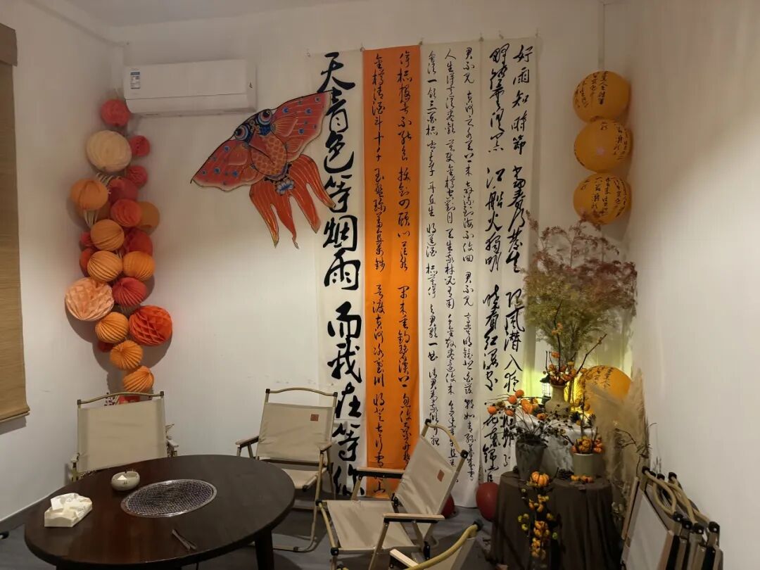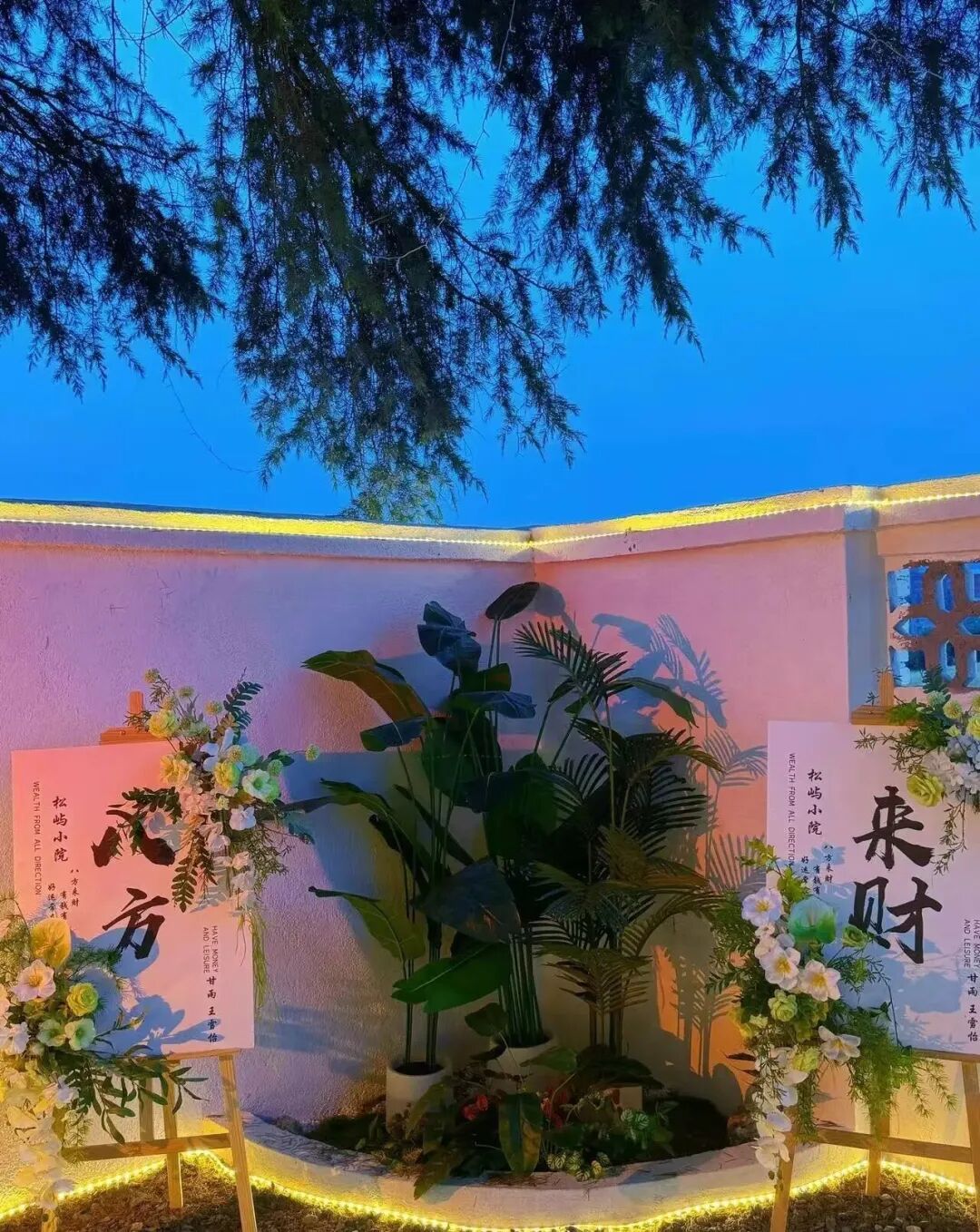 角落里,鮮花與綠植肆意生長,生機盎然,像被遺忘的秘密花園;墻上的書法墨跡,又為這份自然野趣添了幾分沉靜的文藝底蘊。無論是獨享寧靜,還是與知己歡聚,在這里,身心都能找到妥帖的安放。