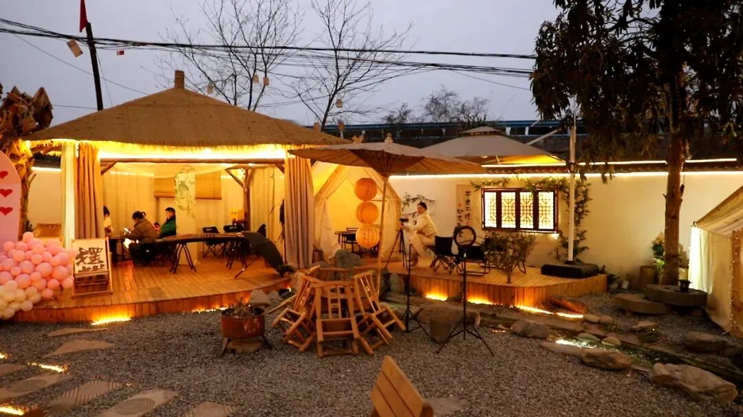城關鎮日進村石榴街上的“一米七小院”,藏著“靜與鬧”的小心思。一樓茶室沉靜內斂,適合商務洽談或知己清談;二樓露天庭院豁然開朗,鮮花與彩燈交織,營造出一片浪漫的夢境。
