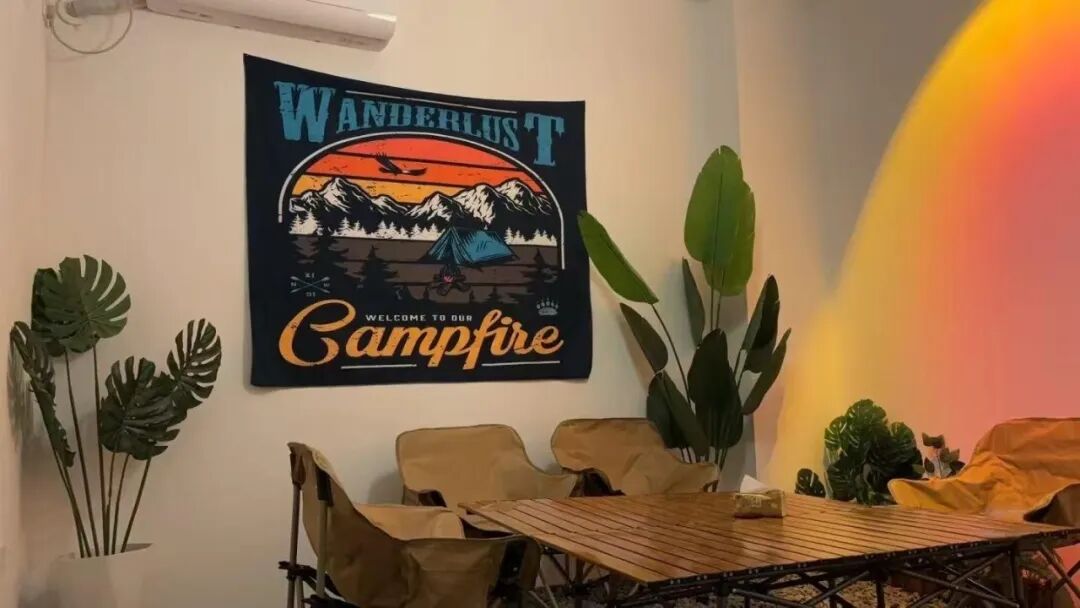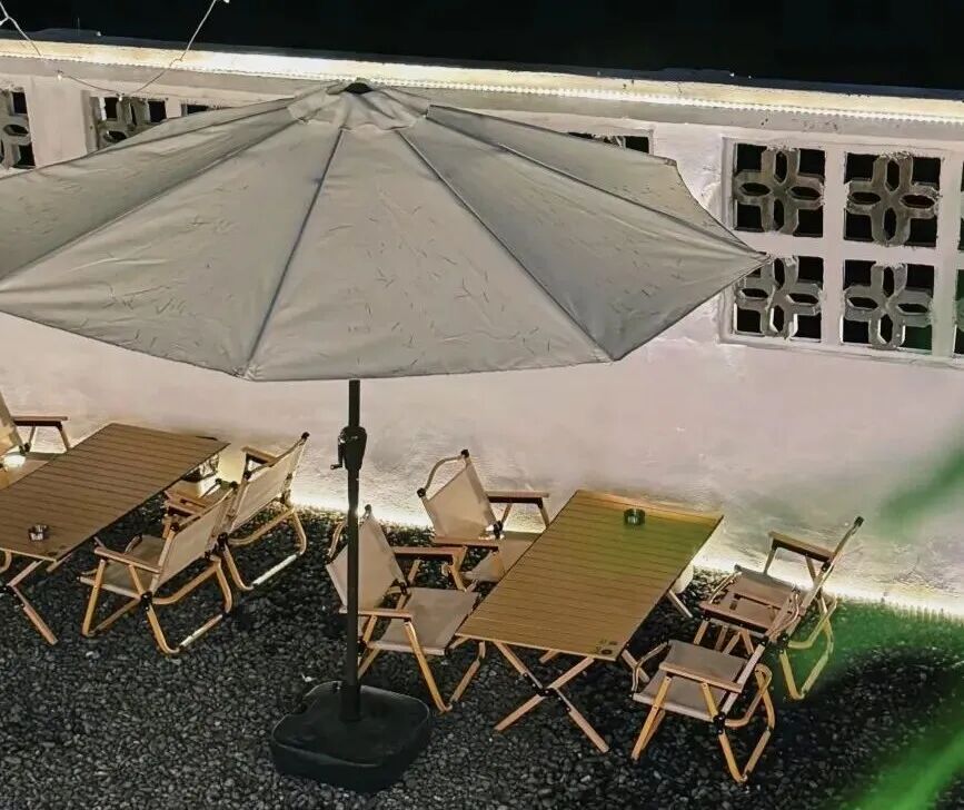 于竹溪近郊,山林掩映之處,“松嶼小院”獨得一份避世清幽,圍爐區設于蒼勁松樹下的木質平臺之上,是秋日里與自然對話的絕佳所在。