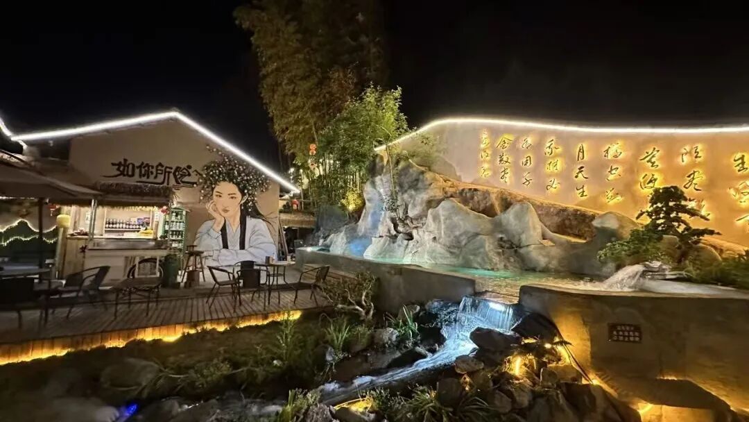 中峰鎮柏楊樹埡村的新式鄉村庭院“如你所院”,是竹溪“90后”新農人甘露改造的閑置老宅。庭院設計別致清新,融合了自然與現代元素。院內保留了夯土墻的質樸,潺潺流水、綠植石雕與暖調燈光,營造出溫馨靜雅的氛圍。