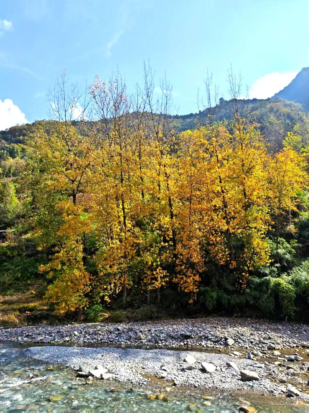 平均海拔875米的山野間,亞熱帶大陸性季風氣候滋養著紅豆杉、小勾兒茶等珍稀植物,紅腹錦雞、黑熊等珍禽異獸在此自在棲息。秋意浸染時,柿樹掛滿橙紅果實,彩林在峽谷間層疊暈染,把秦巴山的生態之美演繹到極致。