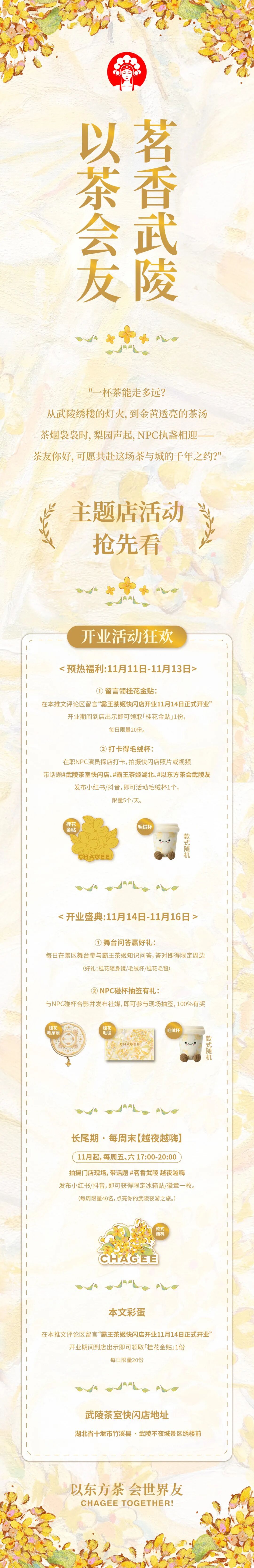 將于明日(11月14日)正式開業以茶會友,邀您共飲!福利來啦!