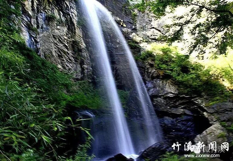 竹溪的水,水深色碧,山,群峰競(jìng)秀,而那青山綠水間溪流潺潺,匯聚成一道道天然瀑布,也蔚為壯觀。