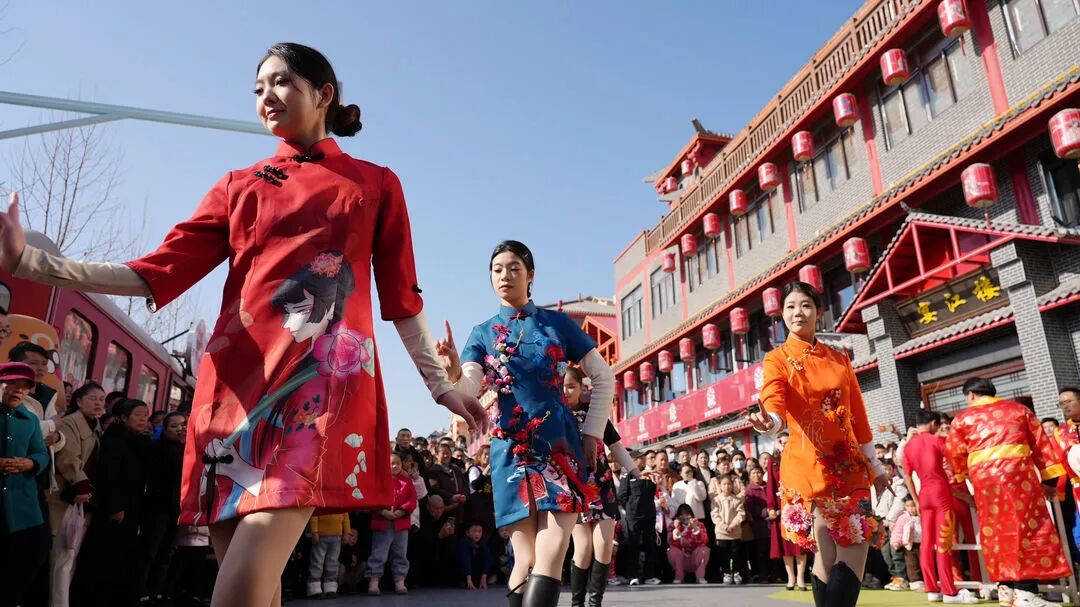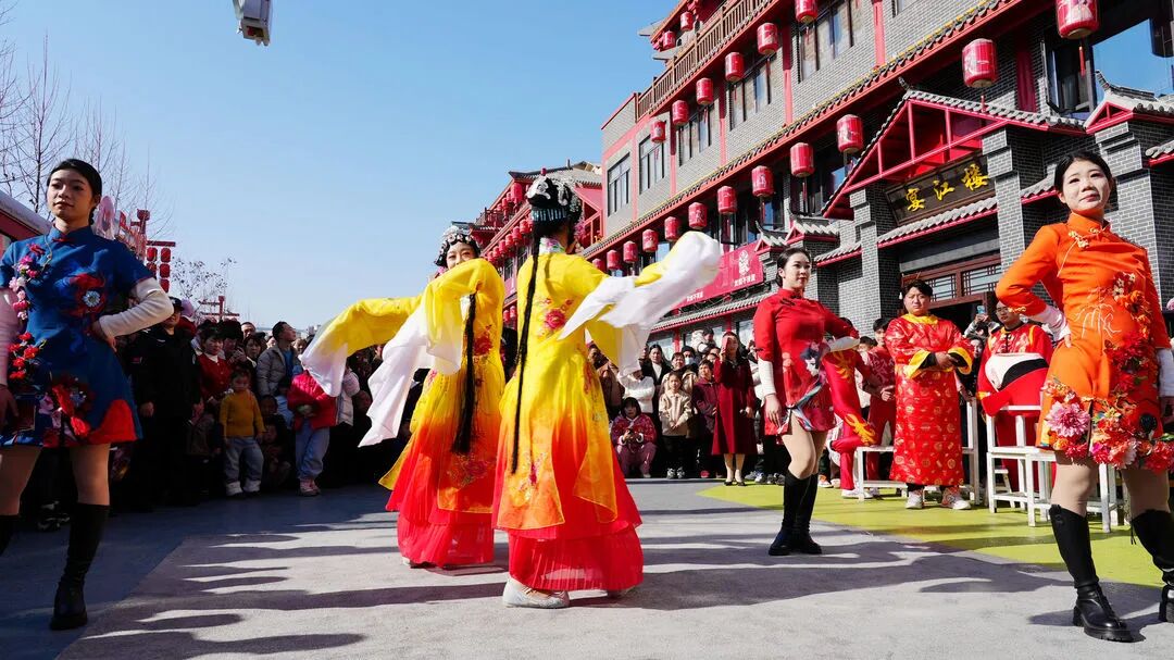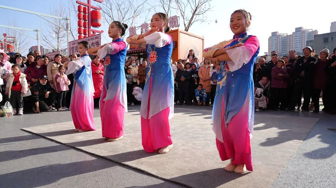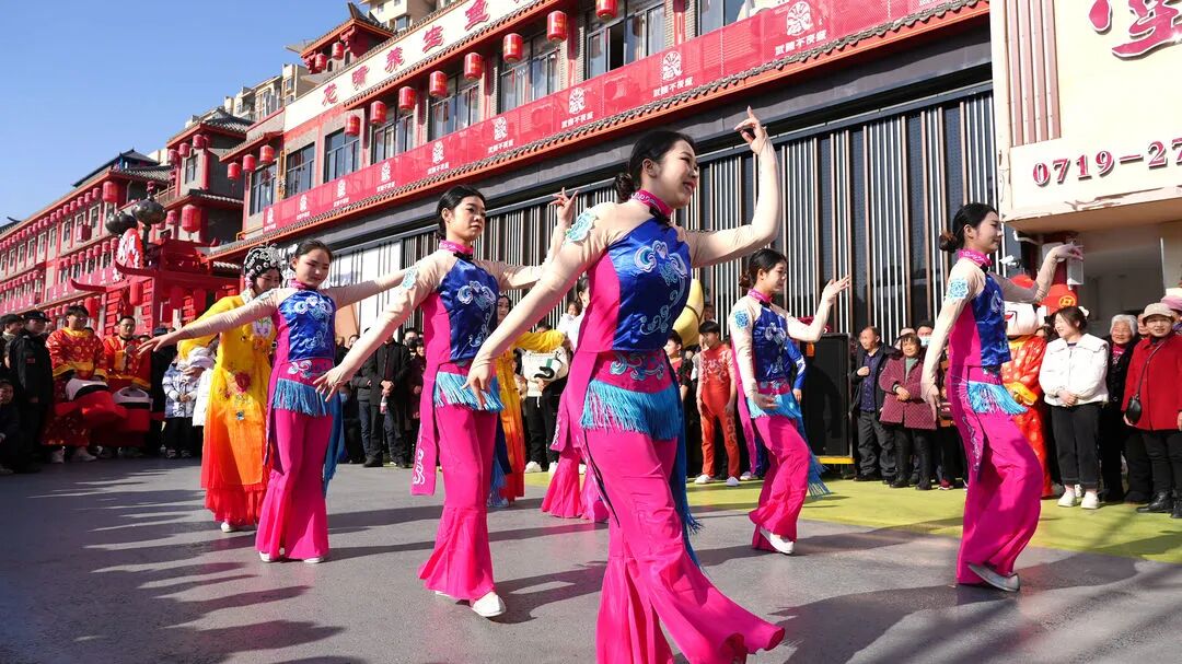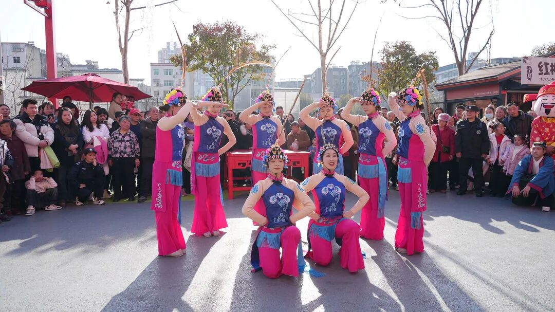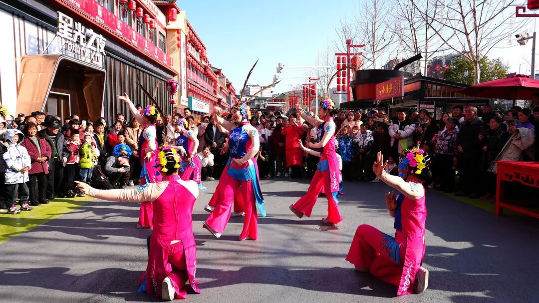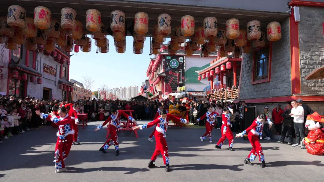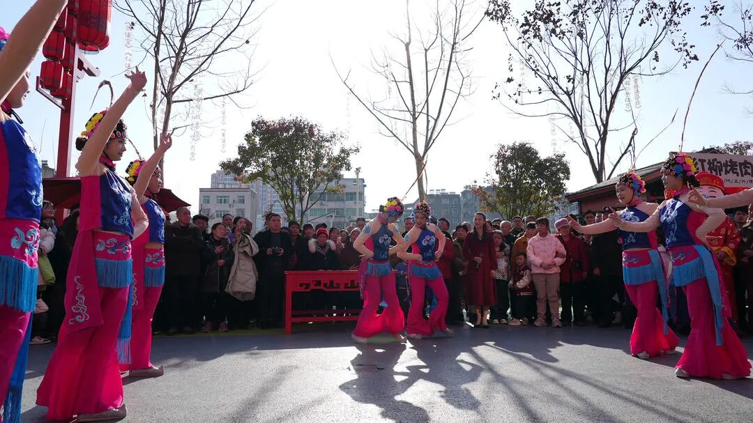 高蹺表演《八仙過海》精彩異常,也祝福著游客們在新的一年能夠各顯其能,大有作為;舞蹈《歡歡喜喜過大年》引爆全場,喜慶、熱鬧的氛圍感染著每位游客。