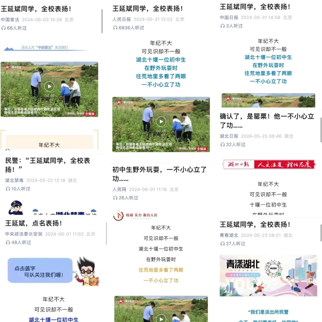 荊楚網、湖北日報、極目新聞客戶端、荊楚網、湖北禁毒、平安湖北今日頭條轉發。