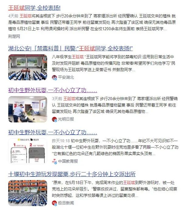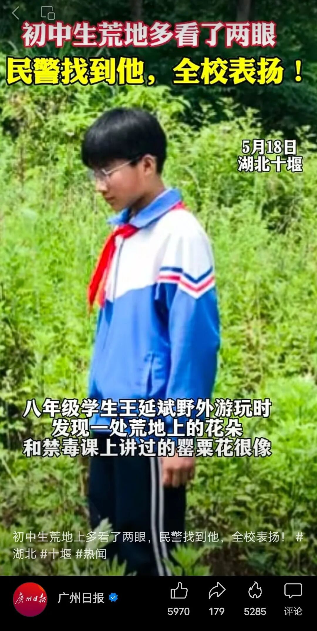 少年強,則國強,去年3月竹溪的兩個小姑娘也通過普法宣傳識別發現罌粟果并上交警察手中也同樣被國家級媒體聚焦關注,獲得全網點贊!