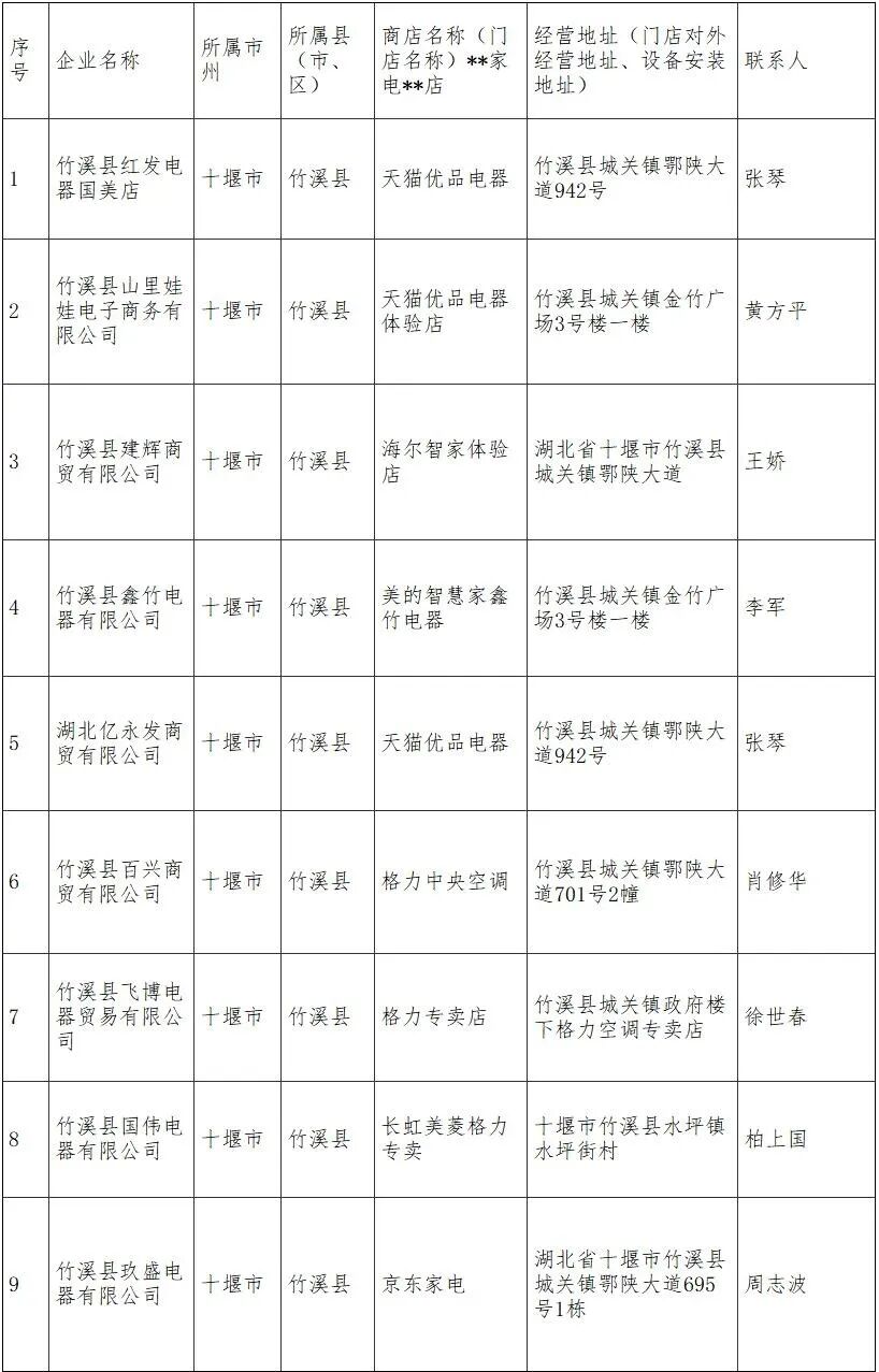 日前,竹溪縣科學技術和經濟信息化局發布竹溪縣綠色家電以舊換新縣級審核線下參與企業名單。