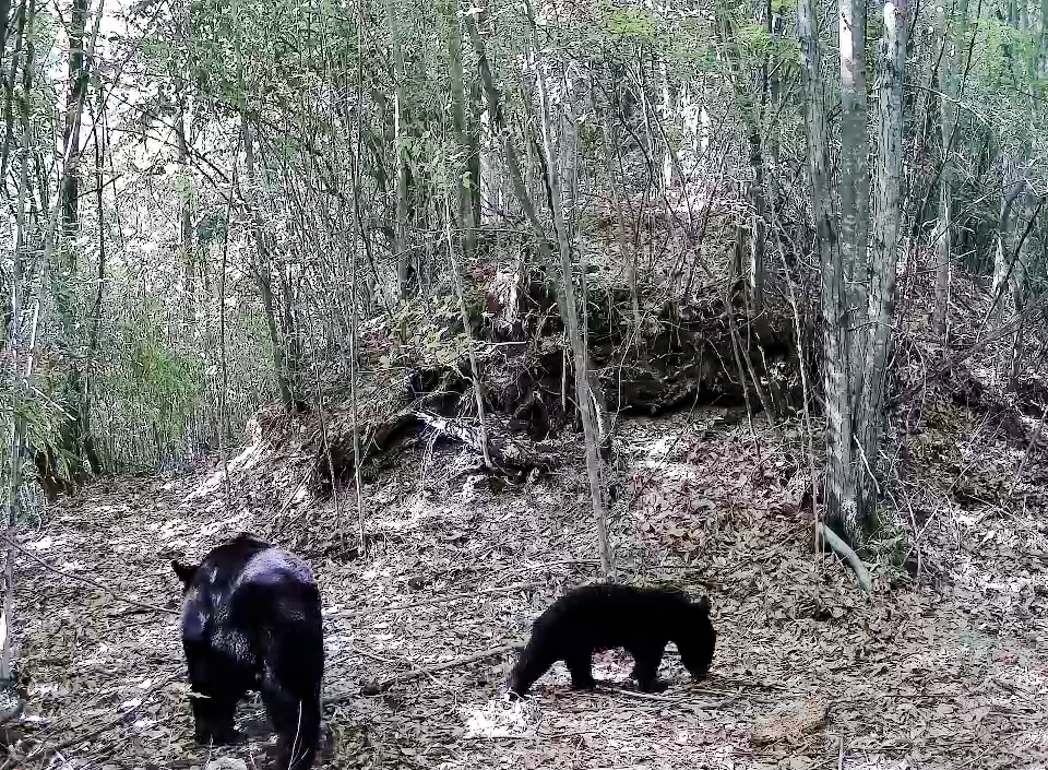 近日,湖北十八里長峽國家級自然保護區管理局工作人員在采集紅外相機拍攝的影像時驚喜發現,多臺紅外相機拍攝到了國家二級保護動物黑熊巡山遛娃的清晰畫面。