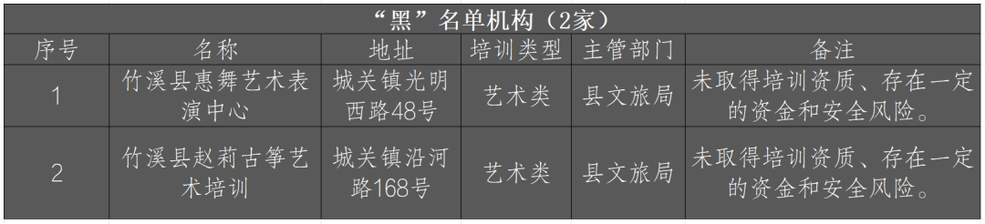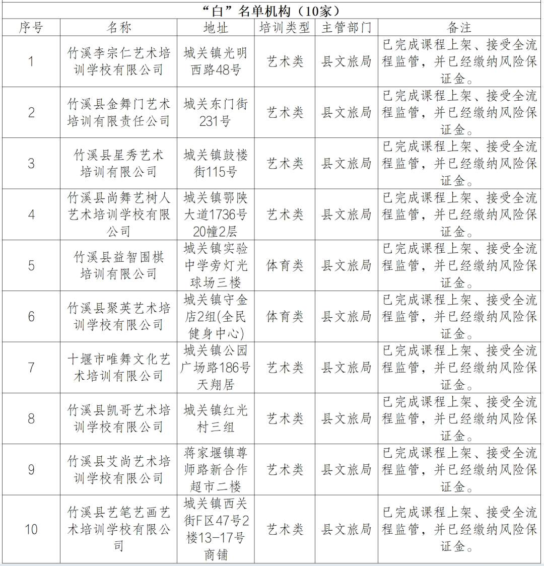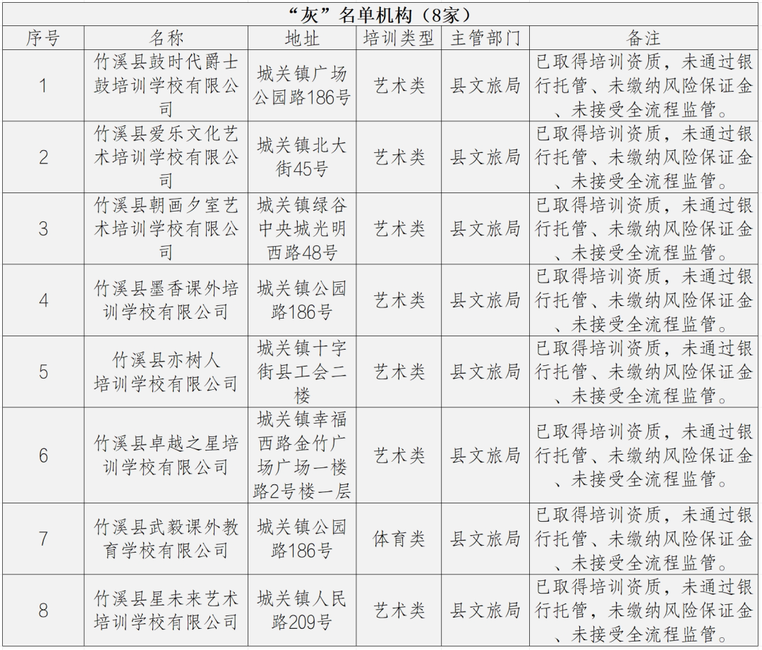 竹溪縣校外培訓機構“白、灰、黑”名單