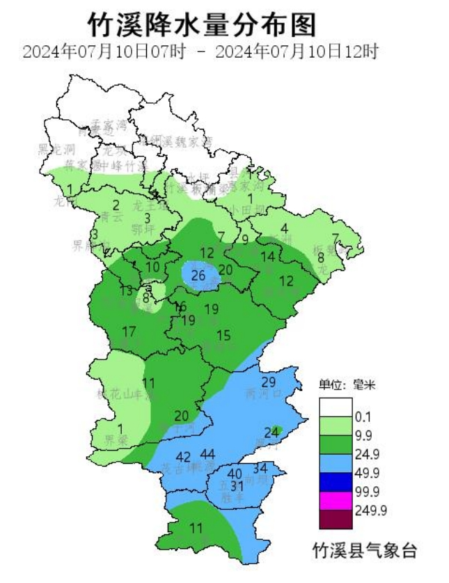 根據(jù)縣氣象局發(fā)布的最新氣象快報(bào)顯示,今日07時至12時,我縣中南部鄉(xiāng)鎮(zhèn)中到大雨累計(jì)最大降雨量為桃源鄉(xiāng)43.7毫米,較大的有桃源鄉(xiāng)茂古坪42.3毫米、向壩鄉(xiāng)五豐39.6毫米。
