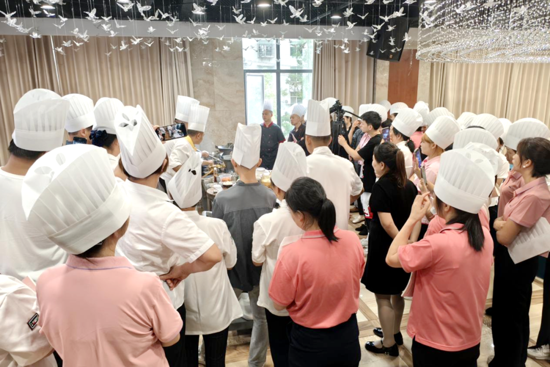 培訓活動吸引了來自全縣110余名烹飪愛好者和專業廚師踴躍參與,培訓課程由天海溫德姆酒店行政總廚、“楚大廚”培訓實操烹飪講師田豐老師親自授課,內容涵蓋了楚菜的歷史淵源、文化內涵、特色食材以及經典菜品的制作技巧。
