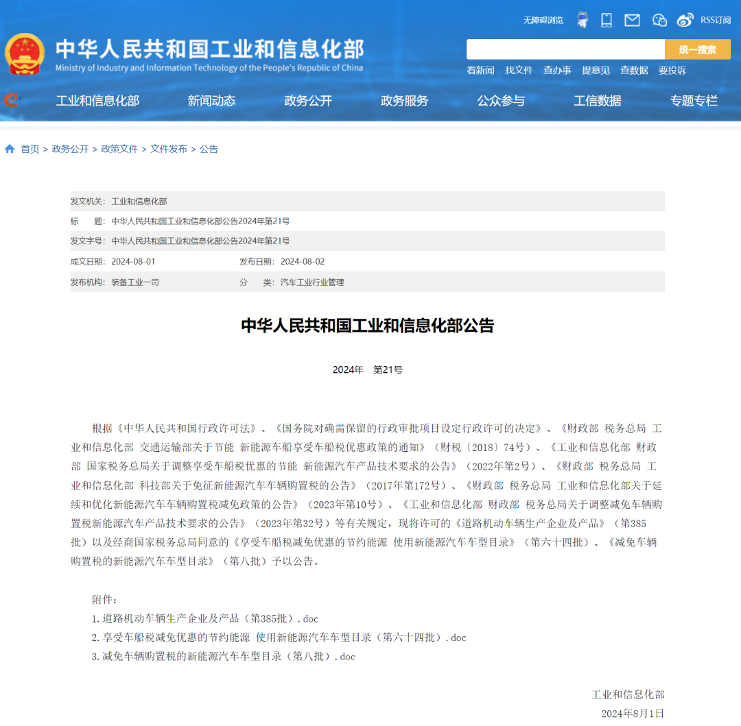 近日,中華人民共和國工業和信息化部發布公告,這些車輛可享減免購置稅。