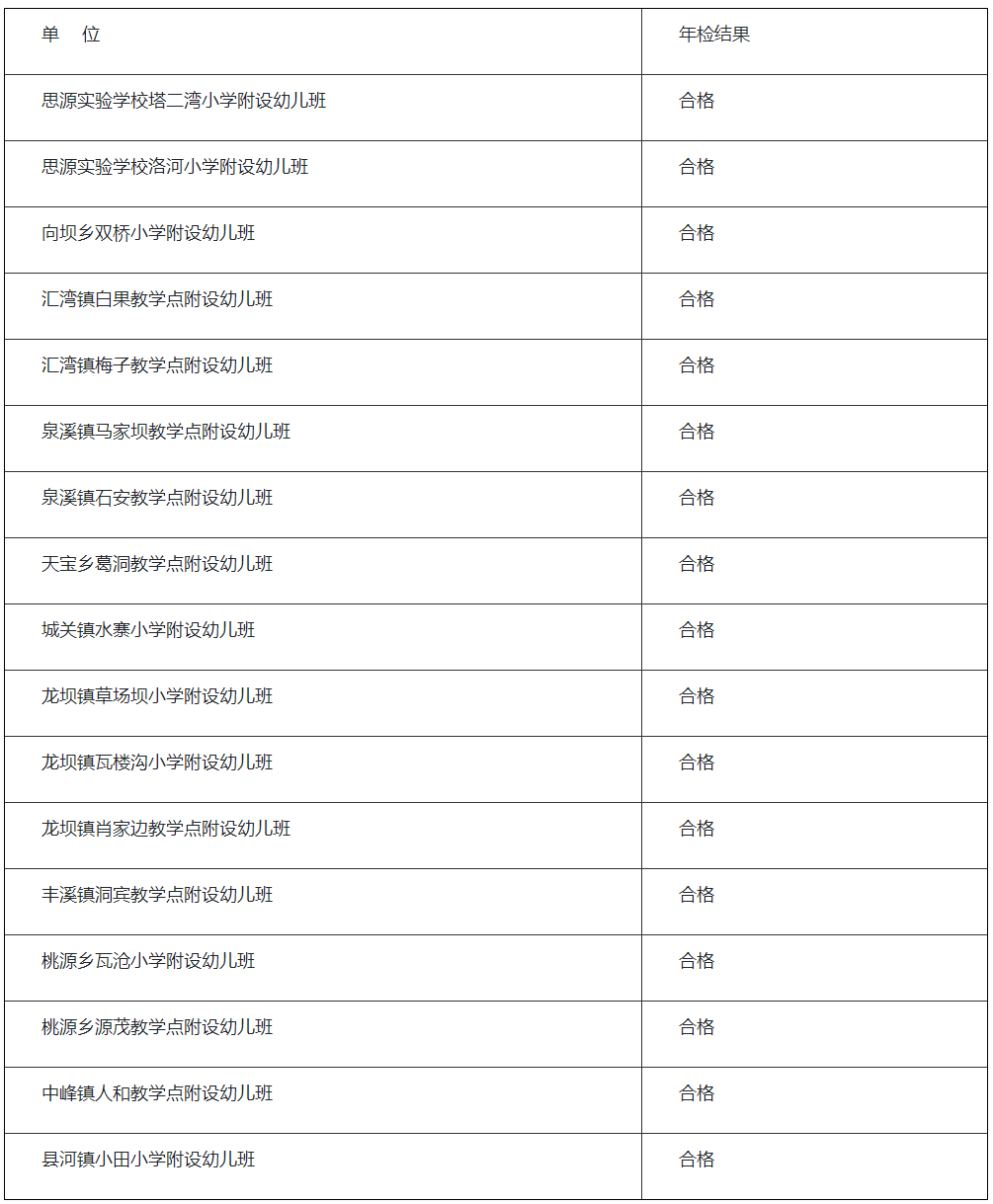 2024年度竹溪縣幼兒園年檢結(jié)果公示