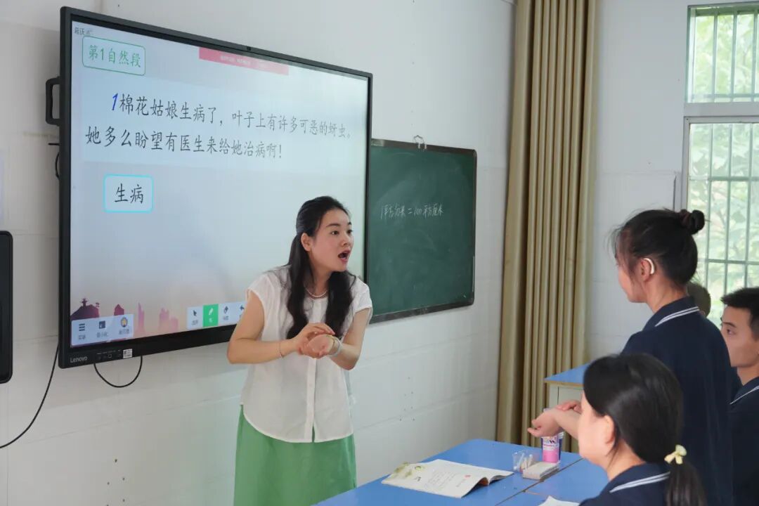 2016年,袁月意從襄陽職業技術學院特殊教育專業畢業后,考入竹溪縣特殊教育學校。雖說是科班出身,但初到工作崗位,她還是感到手足無措:“我打的手語學生們看不懂,他們不會說話,比劃的手勢我也看不懂。”2016年9月開學,袁月意成為一年級聾班4名新生的班主任。回想起初任特殊教育老師時的困難,袁月意說:“特殊兒童比普通孩子內心更加敏感,跟他們相處,要更加有耐心。”