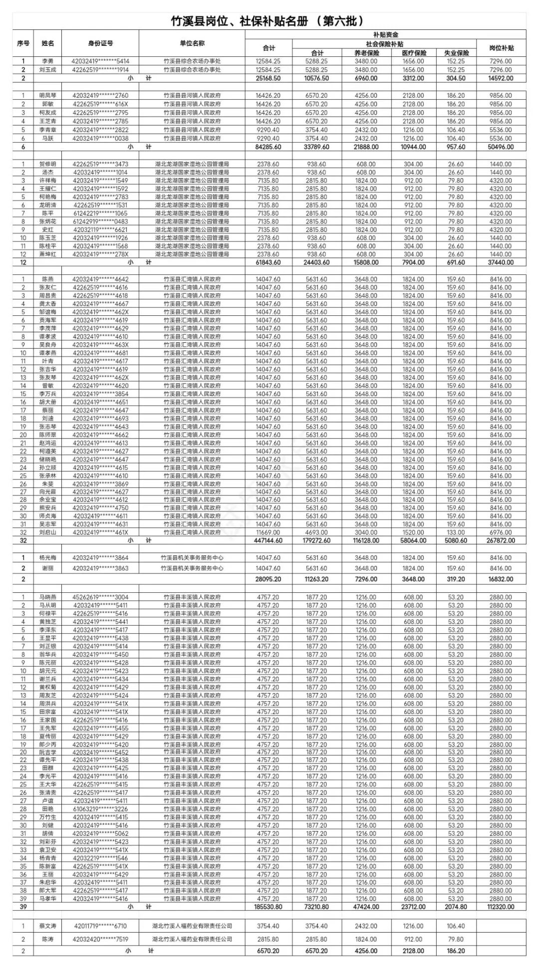附件:竹溪縣崗位、社保補貼名冊(第六批)