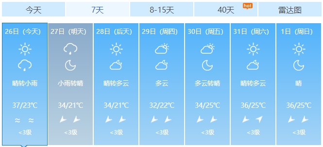 根據最新氣象資料分析,預計未來一周多陣雨或雷陣雨天氣。26日夜間至29日,受冷空氣影響高溫有所緩和;30日后受大陸高壓控制高溫再度加強。
