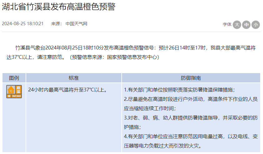 8月24日終于正式出伏了,然而今天出伏第三天仍然沒有感覺到涼爽。縣氣象臺于昨日發布高溫橙色預警信號,預計今日(26日)14時至17時我縣大部最高氣溫將達37℃以上,請注意防范。
