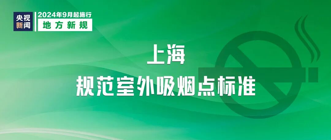 上海市地方標(biāo)準(zhǔn)《室外吸煙點(diǎn)設(shè)置與管理要求》9月1日起實(shí)施,規(guī)定了室外吸煙點(diǎn)的選址、設(shè)施、標(biāo)識(shí)、健康提示等設(shè)置要求,明確了室外吸煙點(diǎn)的日常巡檢與維護(hù)等管理要求,這也是國內(nèi)首個(gè)室外吸煙點(diǎn)的標(biāo)準(zhǔn)規(guī)范。