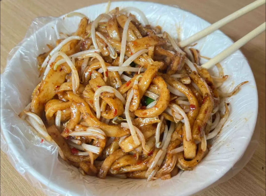 對于喜歡粉和面的食客來說,去西關(guān)橋河堤上的一排炒米粉店準(zhǔn)沒錯(cuò),閉著眼選一家,都不會(huì)讓你失望。不同于南方細(xì)圓形米粉,竹溪的米粉,俗稱面皮子,是切出來的寬條,都是店家用米漿現(xiàn)蒸出來再現(xiàn)炒,確保食材的絕對新鮮。