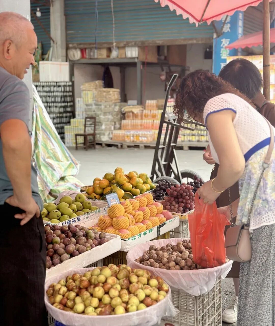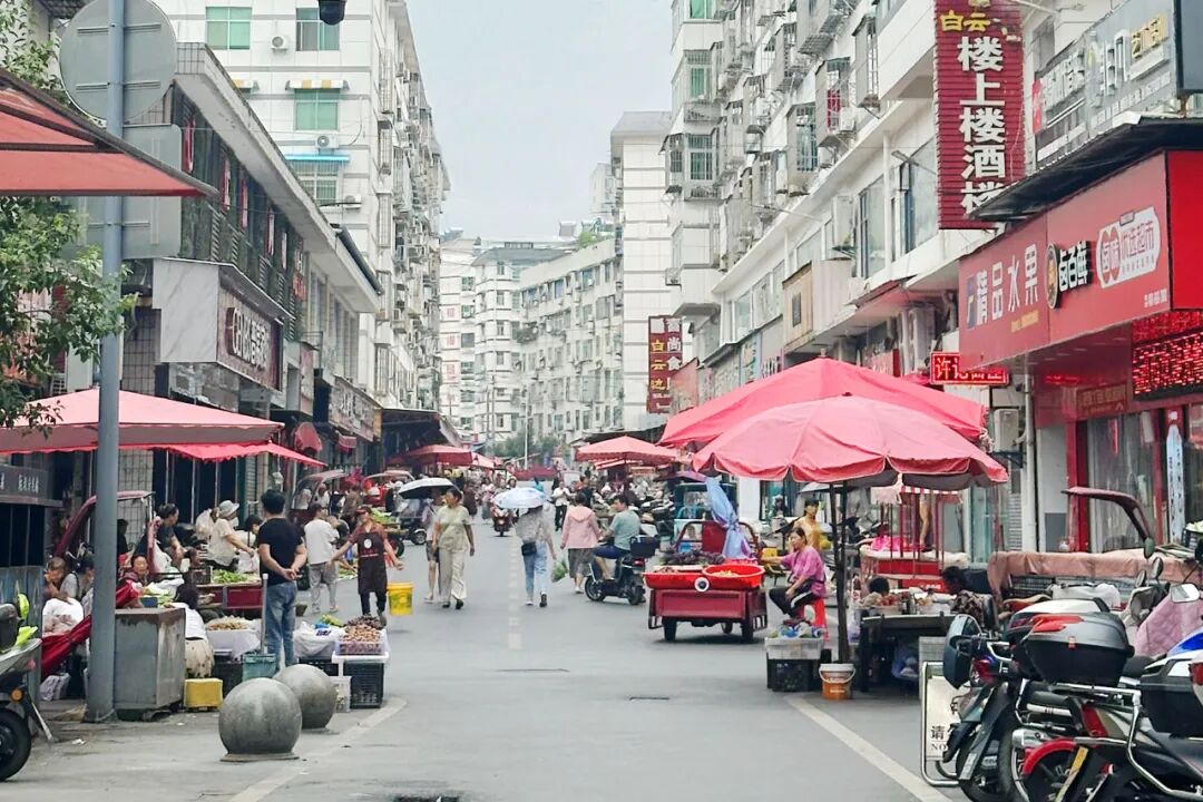 老街的熱鬧是看得見的煙火氣,彌漫著生活本質(zhì)的氣息。一條街,兩邊擺滿了小攤小販,蔬菜瓜果亦或是小吃零嘴應(yīng)有盡有,是童年記憶里那個(gè)充滿人情味的街邊市場。