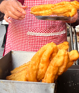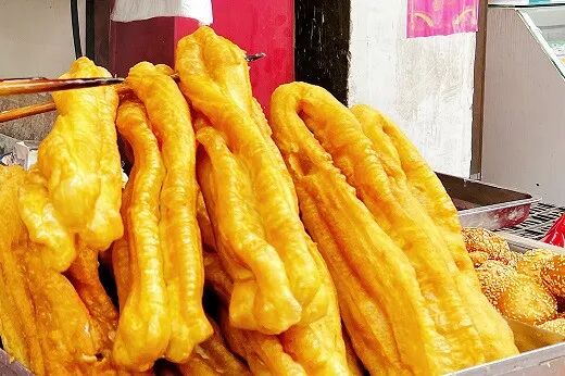 在這里還能解鎖一種新吃法——豆腐腦泡油條,永不過時(shí)的經(jīng)典佳肴。剛炸出鍋的油條,就著熱氣,切成小段,放入豆腐腦中,稍微一泡即可,喜甜之人,可加入一勺白砂糖;喜辣之人,便淋一勺辣椒,各有風(fēng)味,百吃不厭。作為一道老祖宗流傳下來的美味,經(jīng)久不衰,可謂傳統(tǒng)經(jīng)典早點(diǎn)。豆腐腦清爽滑嫩,油條松脆柔韌,這二者搭在一起卻是極妙的組合。