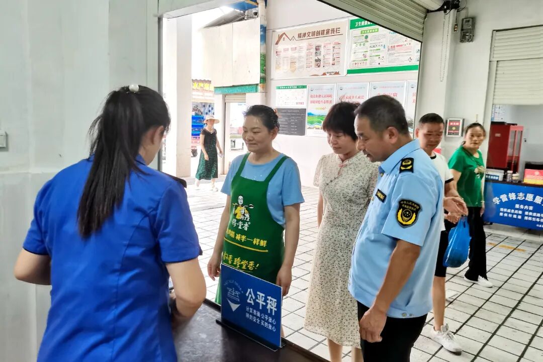 縣市場監(jiān)管局督促市場主體在農(nóng)貿(mào)市場設置了公平秤,并設立宣傳展板和咨詢臺,向消費者介紹使用公平秤的意義,指導消費者就近通過公平秤自行稱重,切實發(fā)揮公平秤的監(jiān)督作用,增強消費者的維權意識。