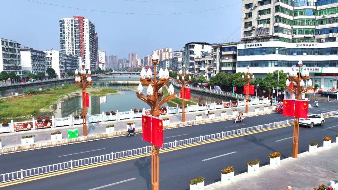 走在溪城街頭,高速公路出口、北環路、八一路、北大街、南大街、彩虹橋等城區主干道、以及大大小小的街道,都懸掛上了亮麗的“中國紅”。