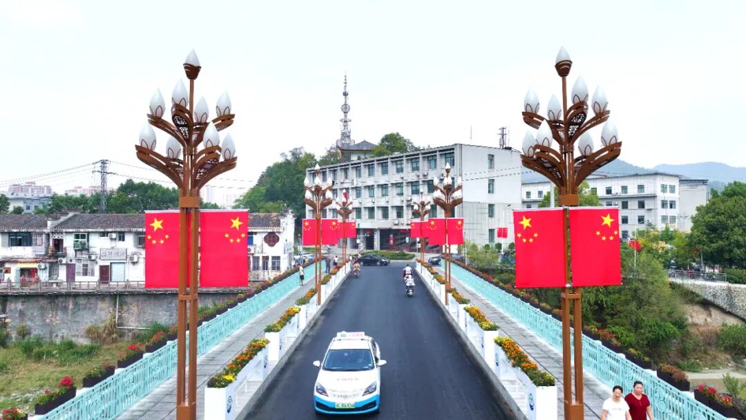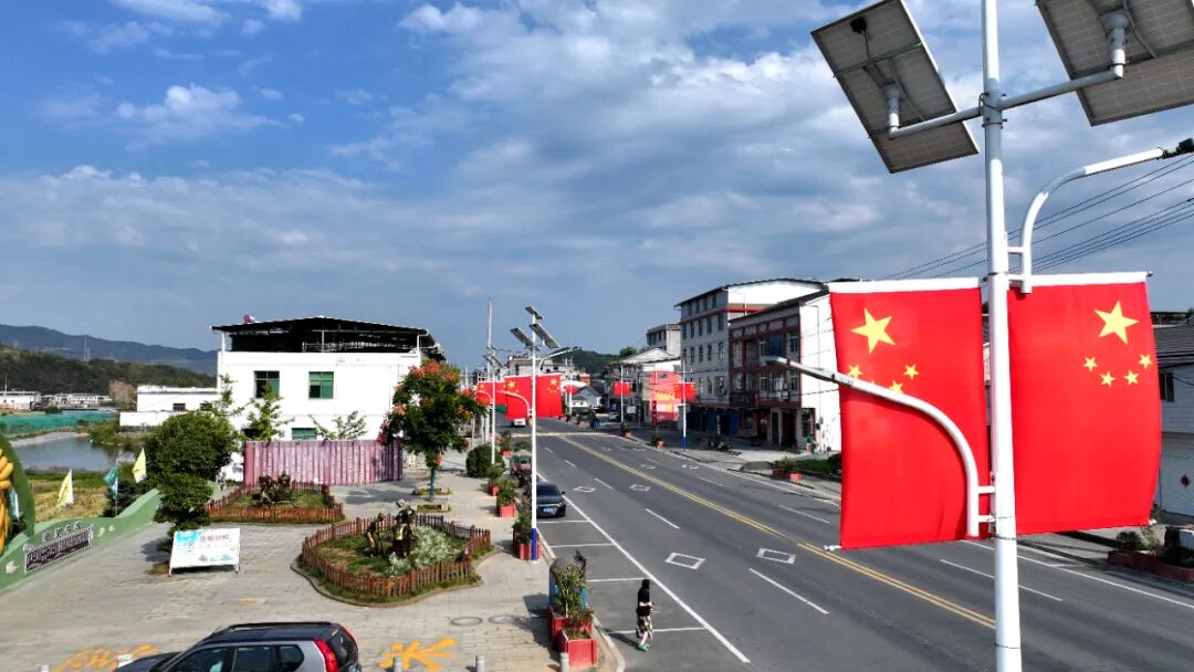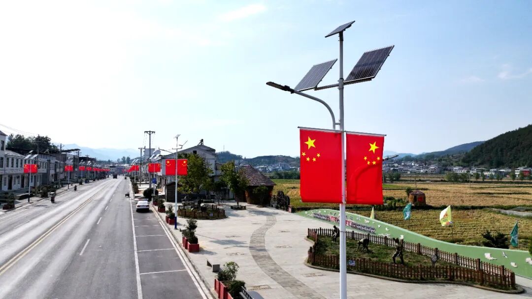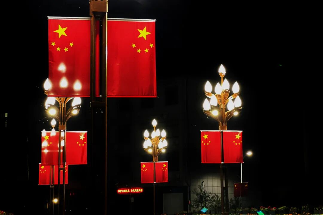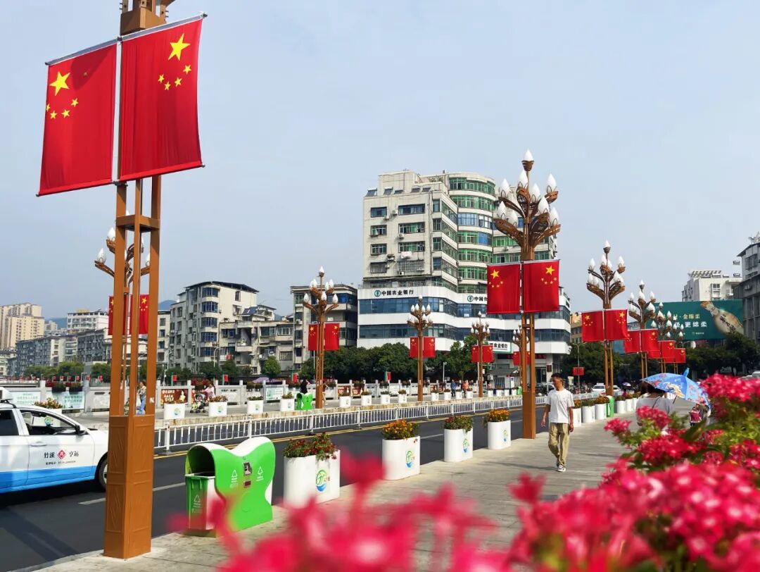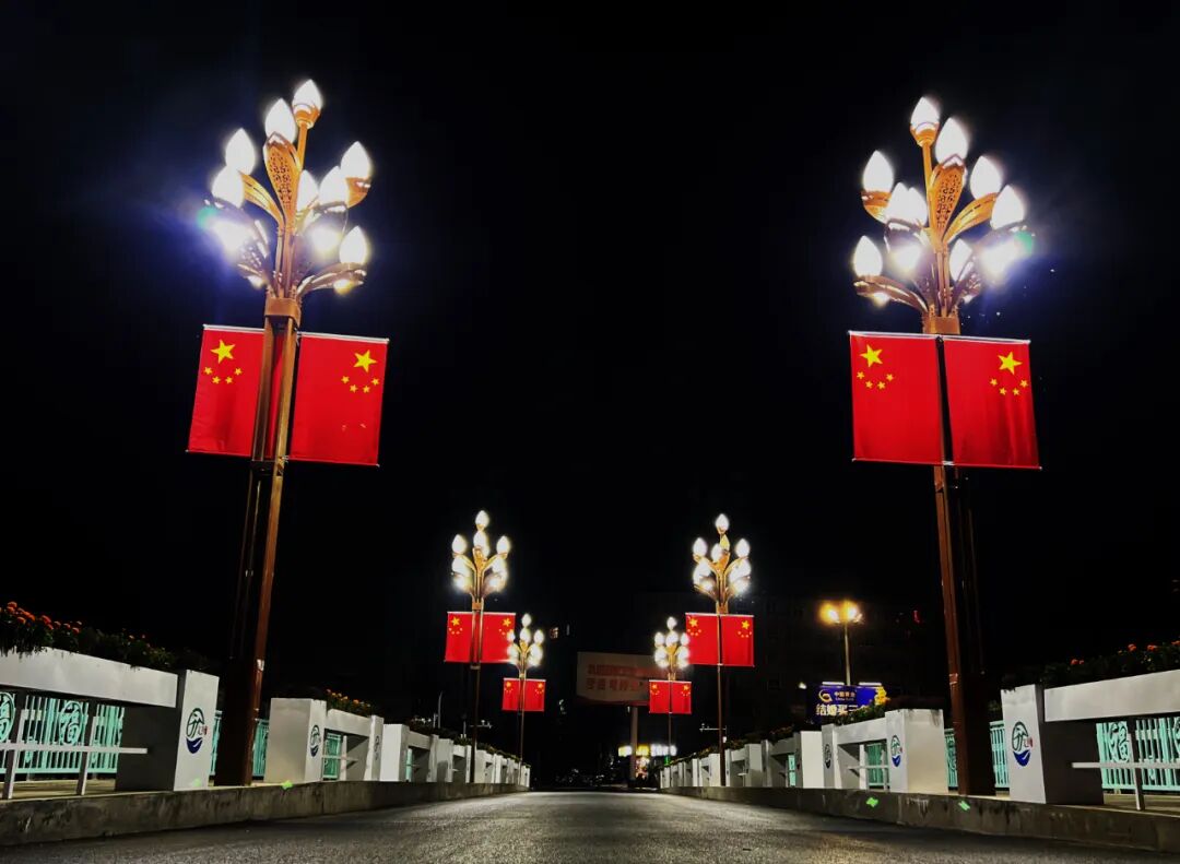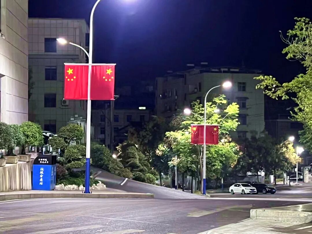 1000多處路燈桿、2000多面五星紅旗屹立在桿頭,仿佛一名名巍峨的士兵守護并裝點著溪城。