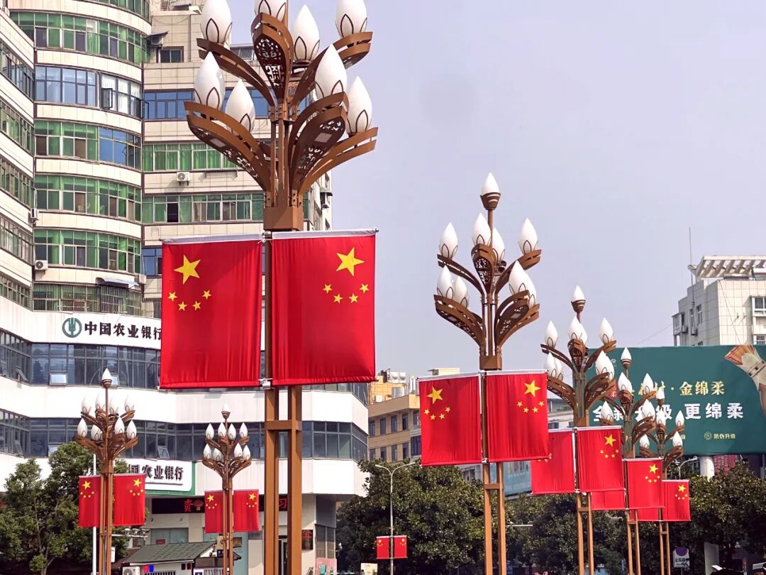 一抹中國紅,滿是愛國情。連日來,我縣城區各主干道路、商業街區、黨政機關、廣場公園、各大景區里懸掛起了一面面五星紅旗,為慶祝中華人民共和國成立75周年,營造了濃厚的節日氛圍。
