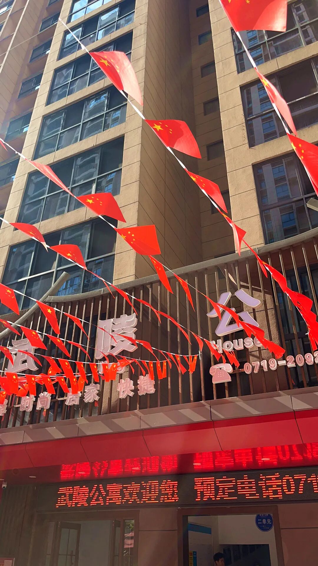 馬路上隨處可見小朋友們揮舞著五星紅旗,各大商超和店鋪門前也都裝點著一面面旗幟,大家都在用自己的方式為祖國慶祝生日。