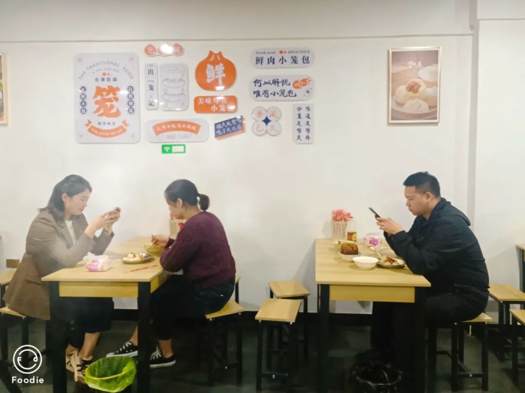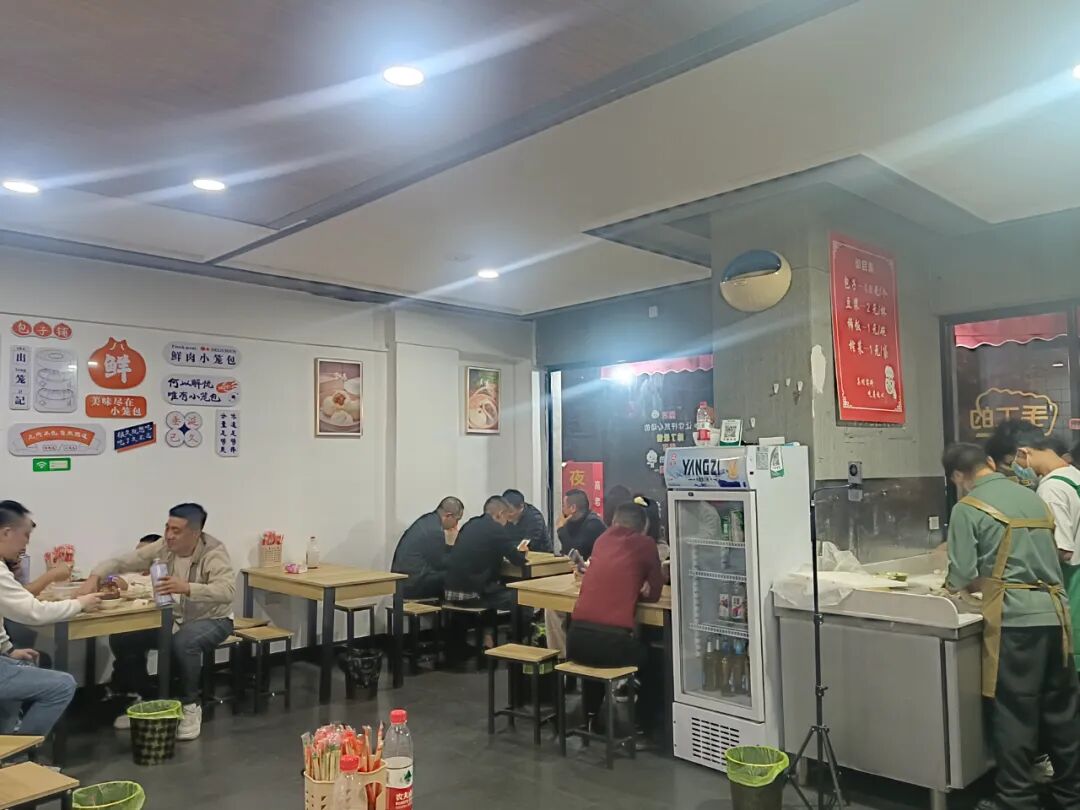 和臨街的夜市攤相比,這家店鋪門面不大,但受歡迎程度并不比燒烤差,瞅瞅食客面前的餐桌,小籠包無疑是主角。