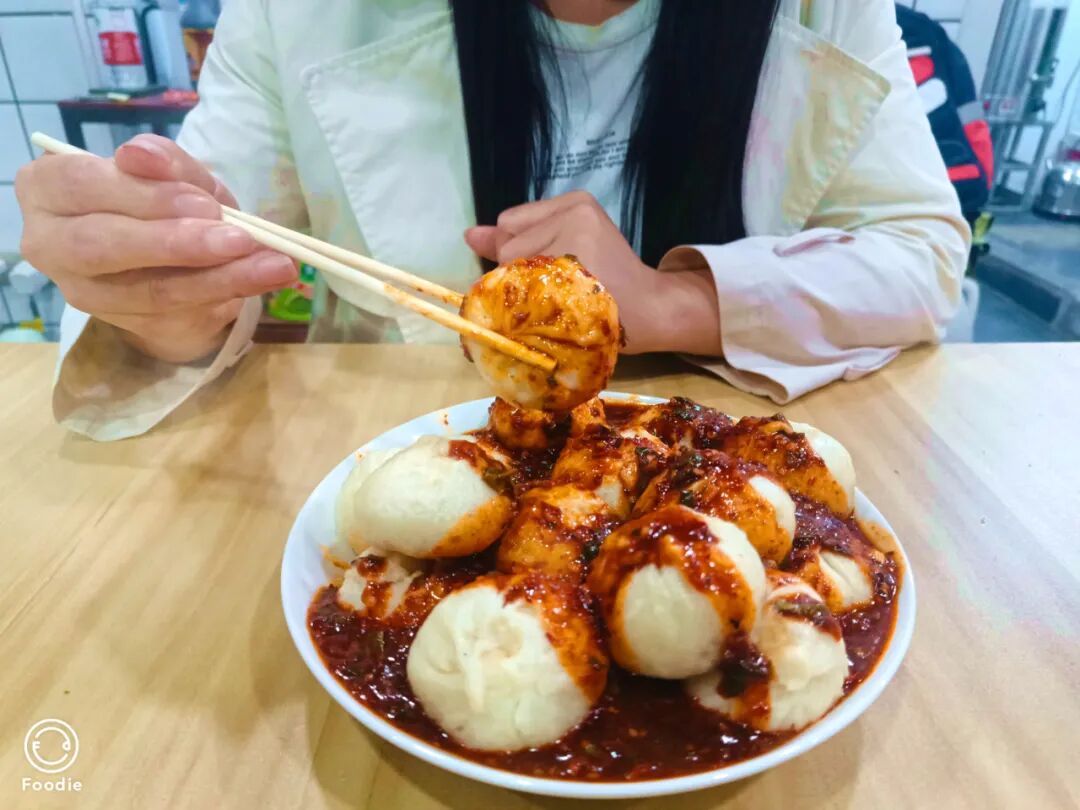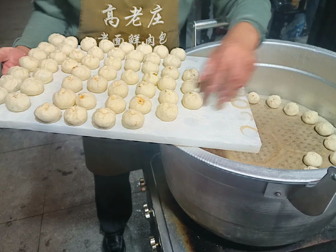行至燒田壩幸福路,一陣誘人的香味撲鼻而來,抬頭一望,“高老莊老面鮮肉包”明亮的招牌映入眼簾。