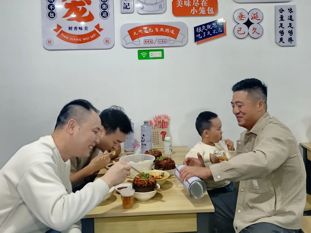 顧客們有的圍桌而坐,享受一口一個的滿足感,有的則圍在蒸籠旁耐心地等待。
