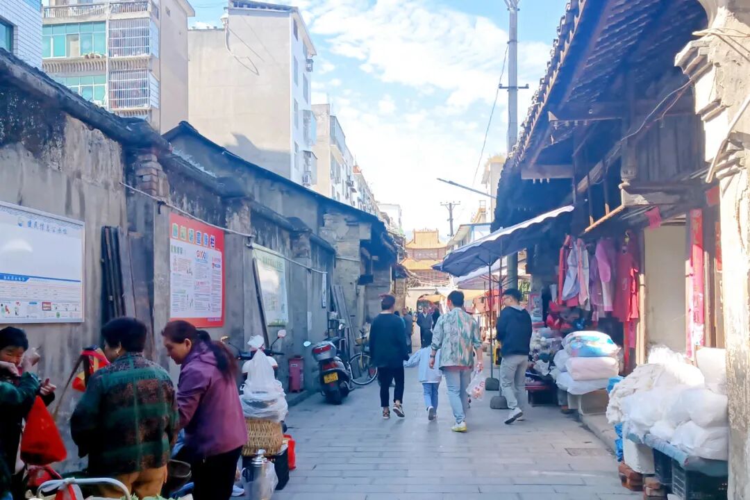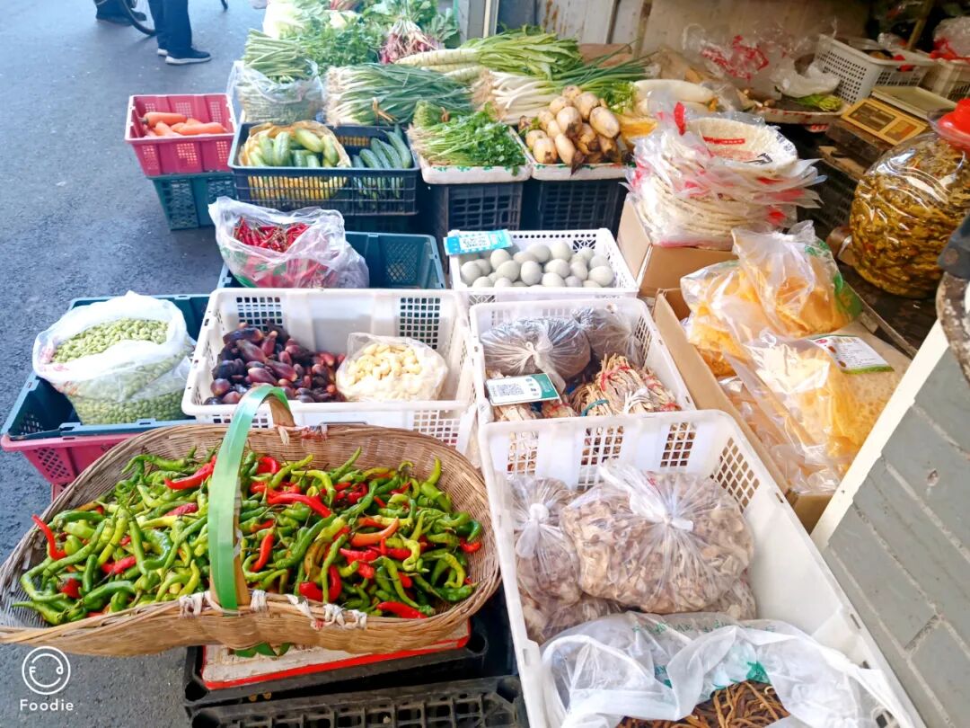 東門街邊,商鋪店面錯落有致,有招牌店面,也有無需店面的野攤。從新鮮欲滴的蔬菜水果,到散發著陣陣清香的芝麻餅,再到泛著微微光澤的肉類,每個攤位都是一幅生活的小畫卷。