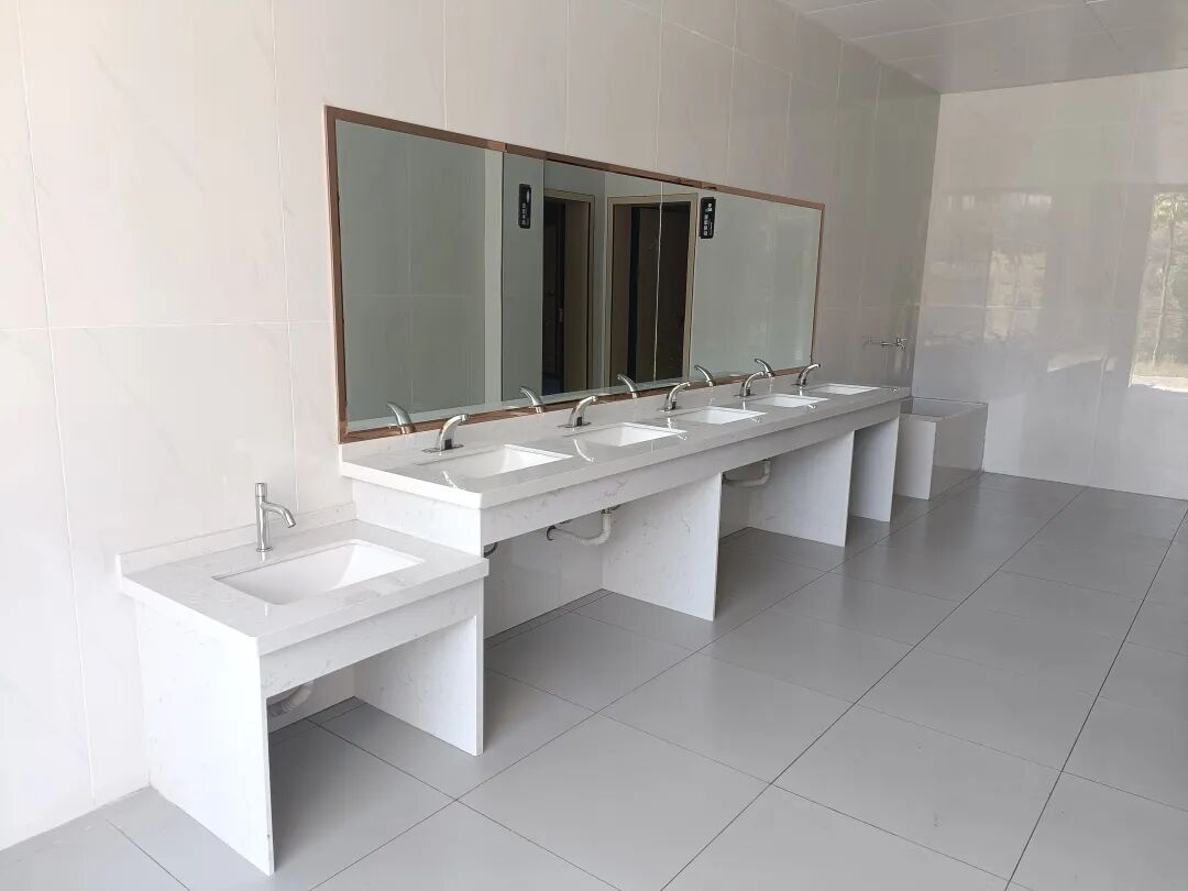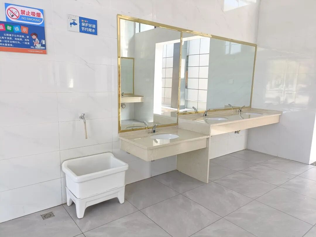 該公廁主體為全框架結構,分為上下兩層,上層平臺占地346.13平方米,地面用大理石鋪貼,供群眾日常的休閑娛樂;下層為公共衛生間,內設男、女洗手間,無障礙衛生間和管理用房,外部修建無障礙通道直通室內,為特殊人群提供方便??h城管執法局安排有日常保潔人員,定時進行清潔維護,確保了公廁的衛生良好。