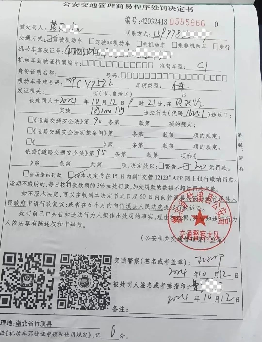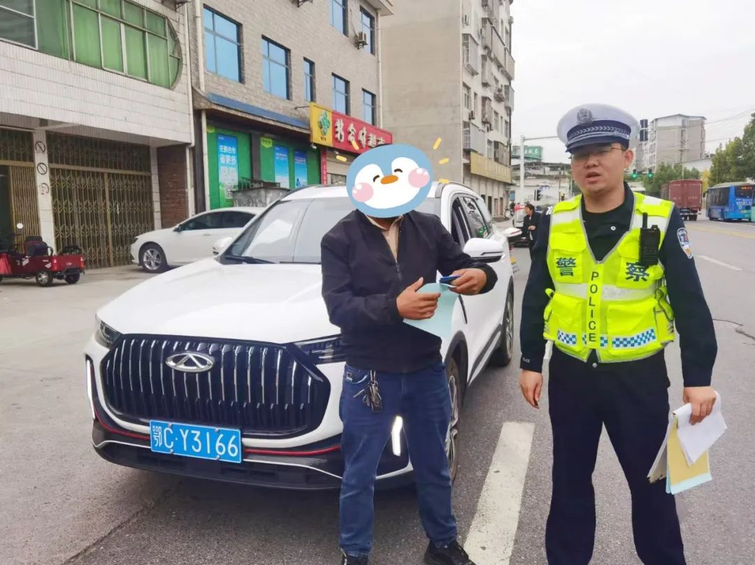 2024年10月11日10時11分,魯某海駕駛鄂C52Y81小型車,在鄂陜大道三堰橋禁止左轉,被竹溪大隊稽查布控查獲并依法予以處罰。當日,民警對其開展“敲門行動”,駕駛人現場簽訂《踐行“文明交通”承諾書》,并上路開展文明交通勸導。