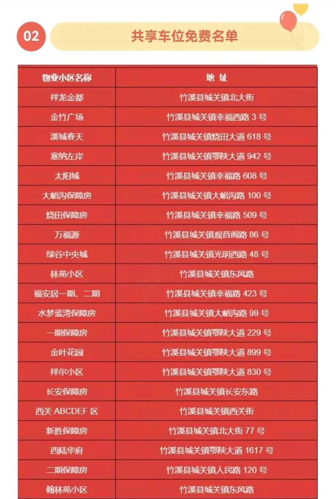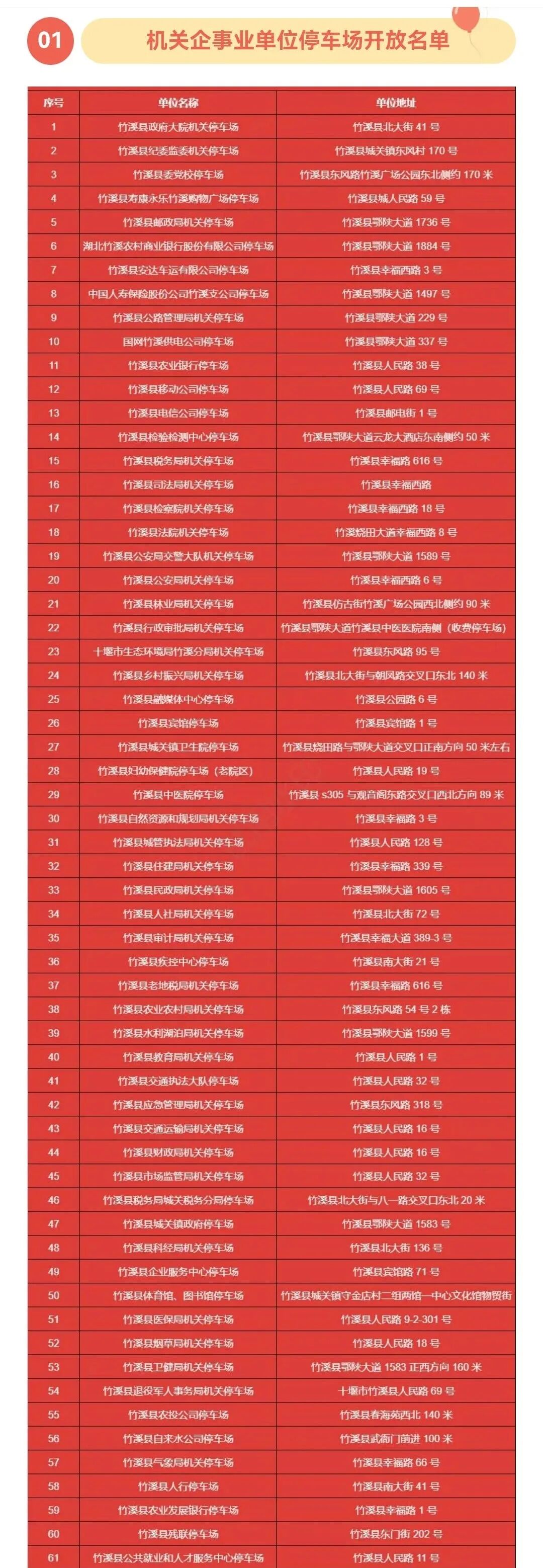 公開告知免費共享車位數(shù)量、地址方便外地游客來停車