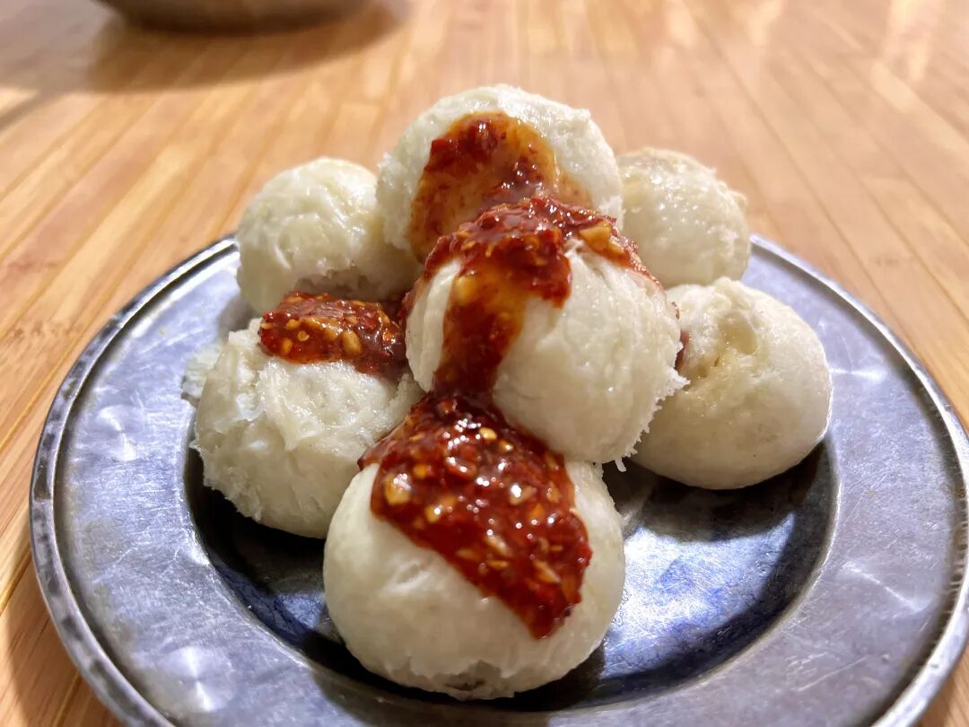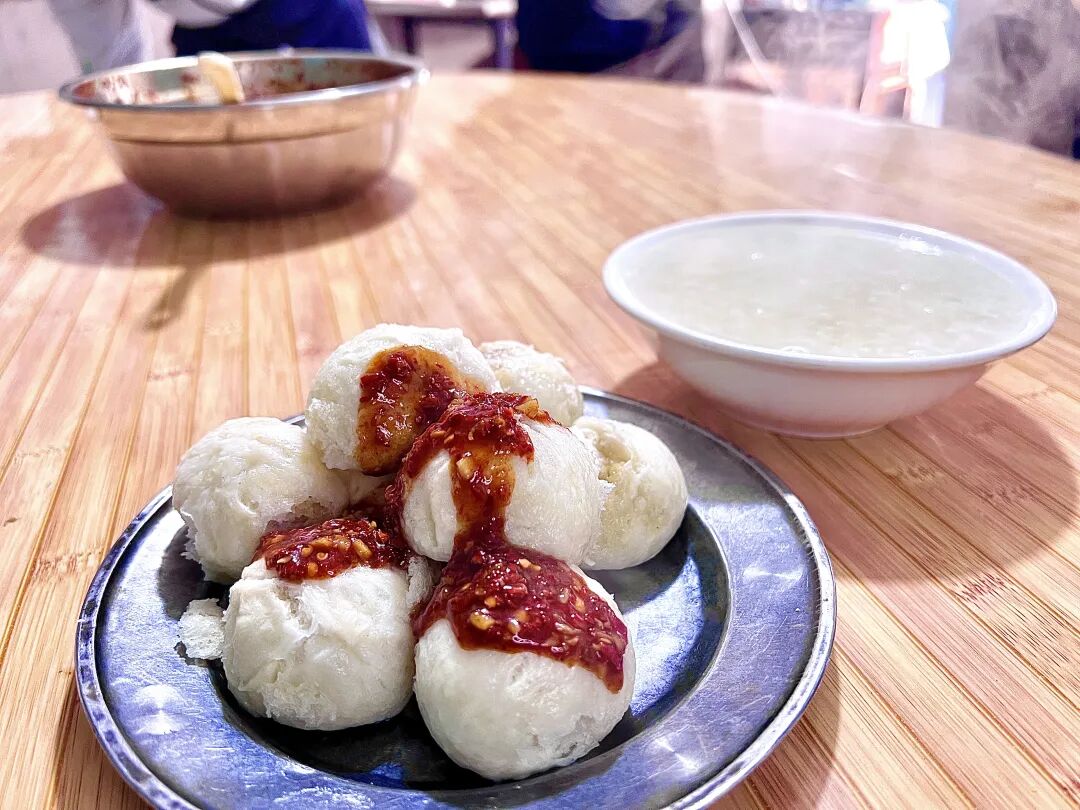時間在流轉,歷經三四十年的包子依舊是記憶中的味道,潔白松軟,薄皮大餡,蘸上兩勺辣椒醬,一口咬下去,辣醬的微辣略帶酥麻,面香餡兒嫩,辣油香和肉餡的咸香互相成就,久吃不厭。