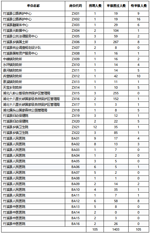 2024年竹溪縣事業單位公開招聘工作人員報名情況公布