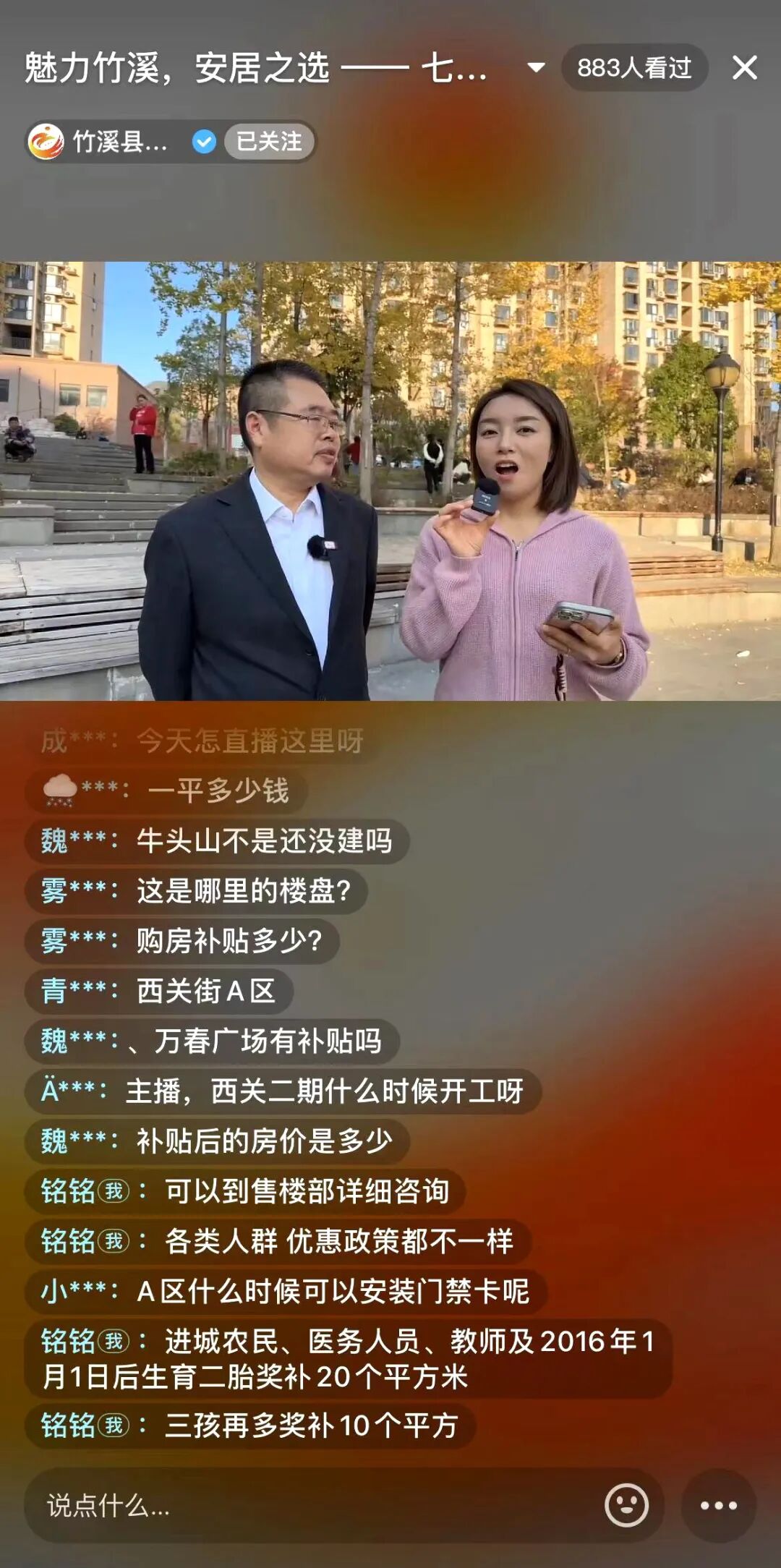 為了讓更多市民更加直觀地了解房屋情況,探訪期間,竹溪融媒記者還跟隨“看房團”的腳步,前往西關街在售樓盤和實景房實地參觀,在竹溪融媒官方抖音號、視頻號、微竹溪微信公眾號開啟直播,詳細介紹樓盤的配套設施等情況,還向網友講解獎補政策申辦流程、實施細則,熱心為觀眾答疑解惑。